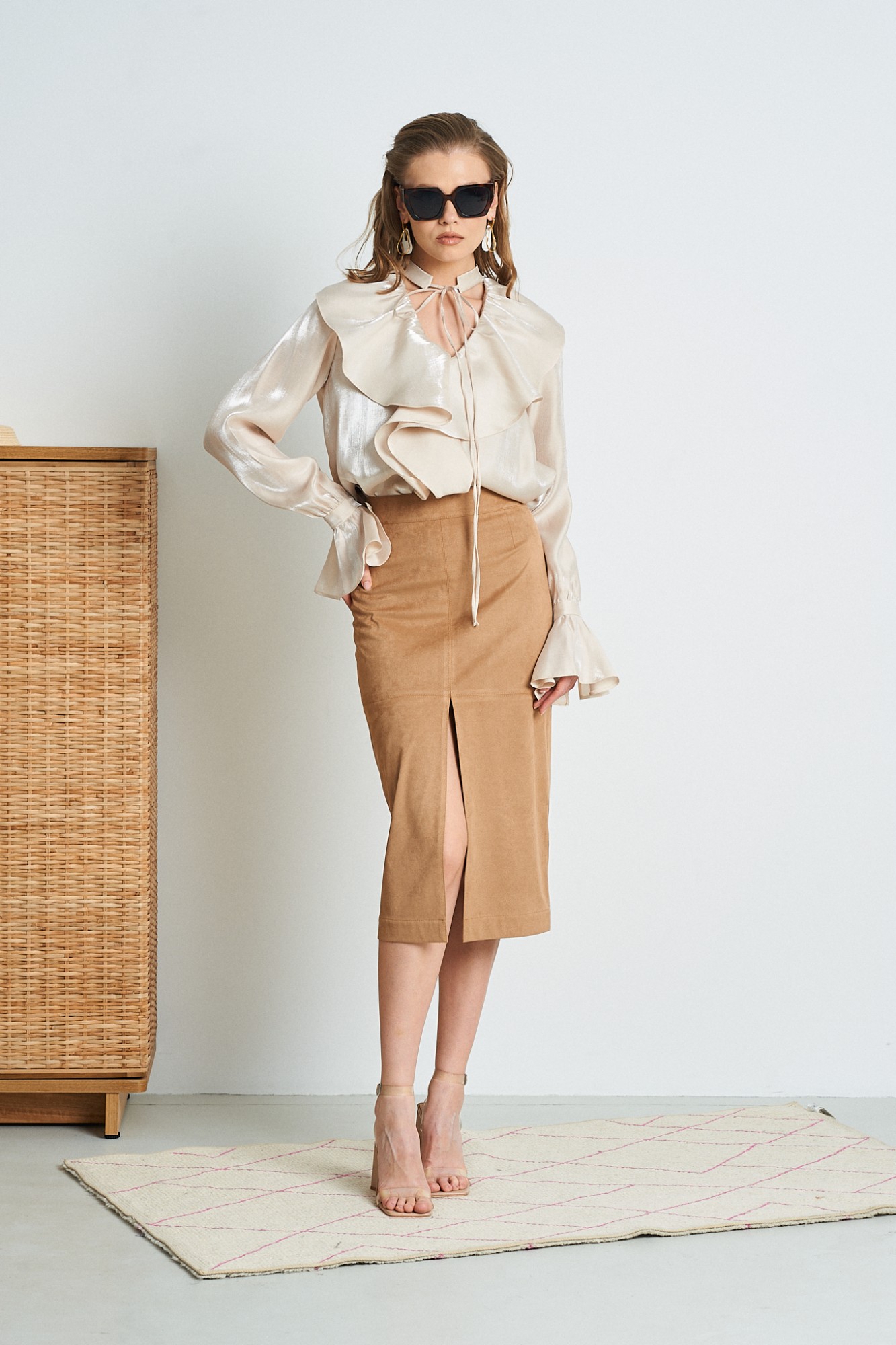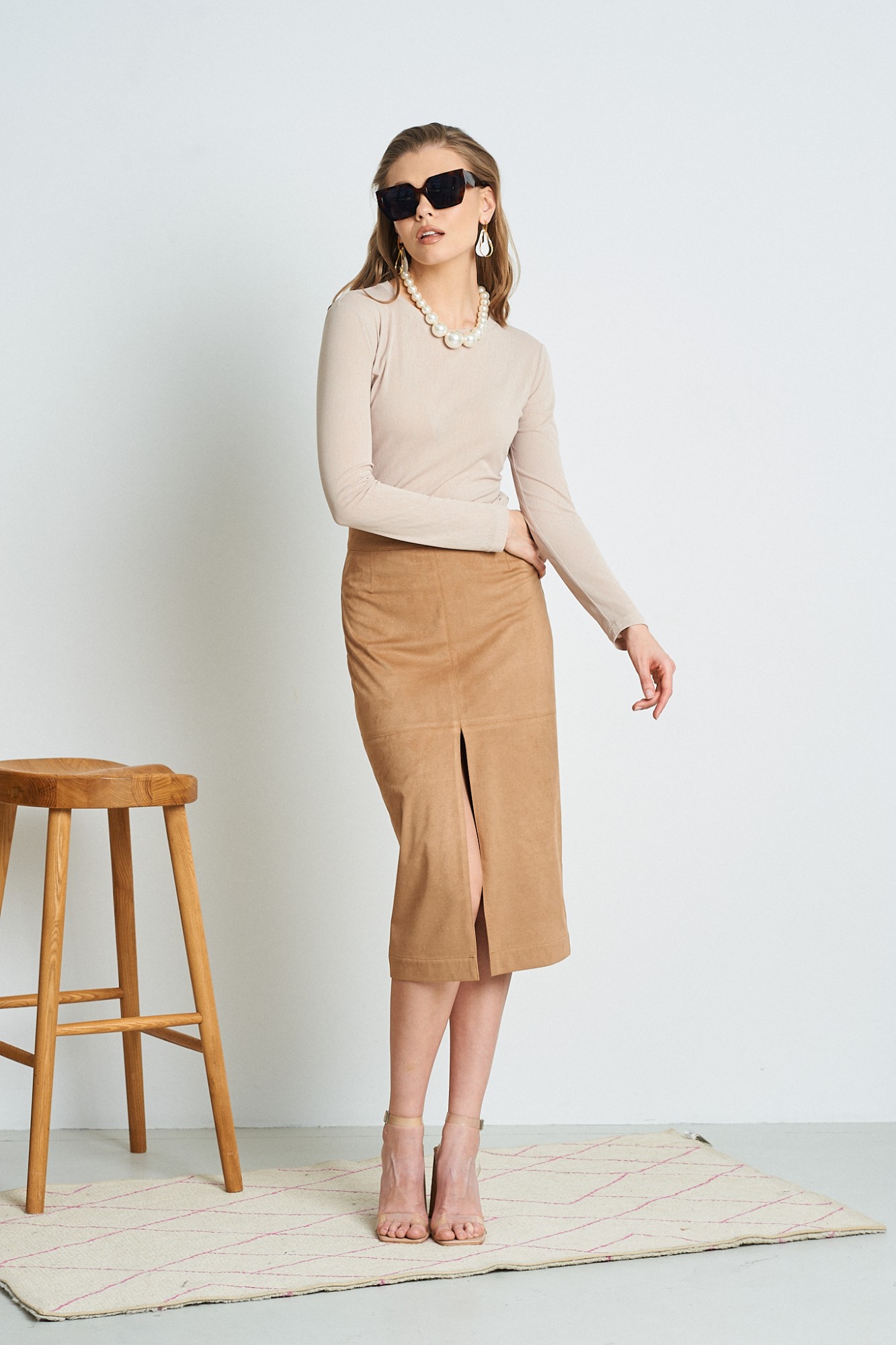 Юбка из актуальной замши цвета кемэл.