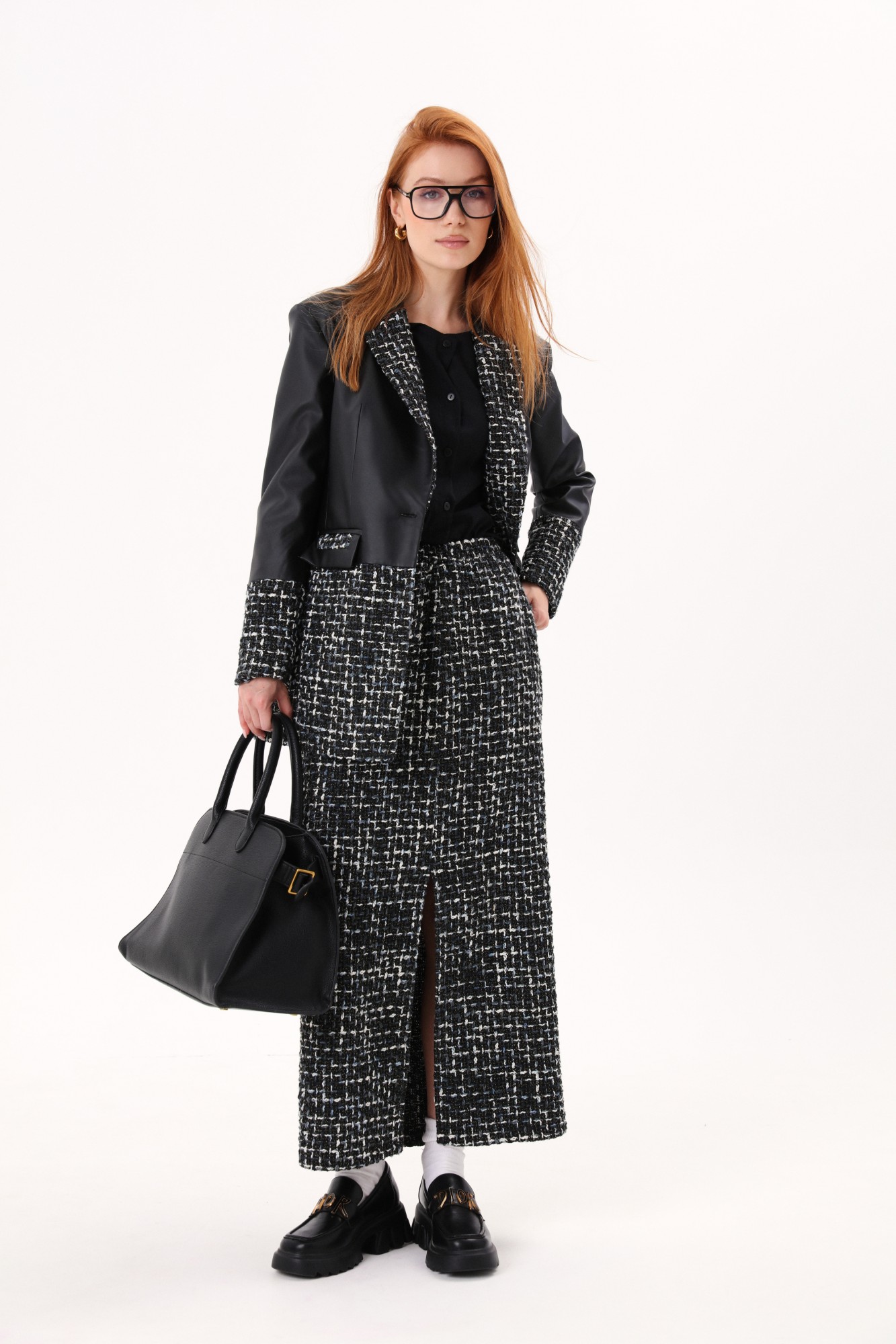 Юбка длиной миди прямая на резинке. Карманы в боковых швах. Разрез по переду.