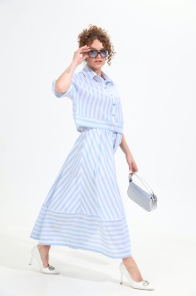 Юбка - солнце с узким поясом. В боковых швах расположены карманы. Застёжка центральная на петли и пуговицы. В комплект к юбке идет широкий пояс из основной ткани.