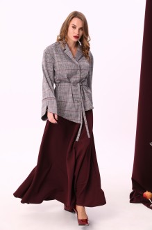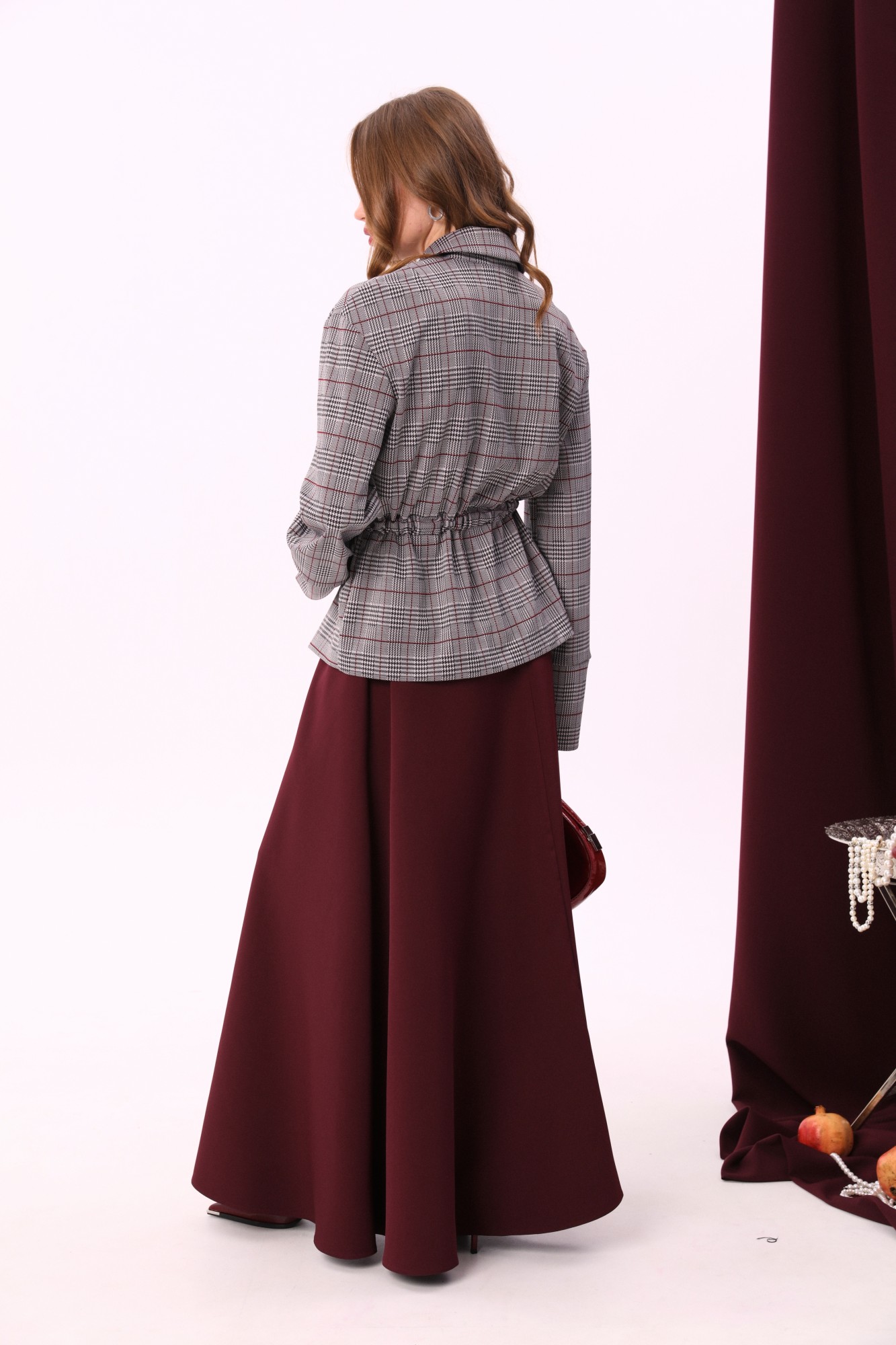 Юбка - солнце макси с узким поясом. В боковых швах расположены карманы. Застёжка на петлю и пуговицу и молнию по спинке.