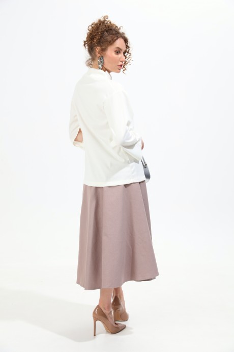 Юбка - солнце с узким поясом. В боковых швах расположены карманы. Застёжка на петлю и пуговицу и молнию по спинке.