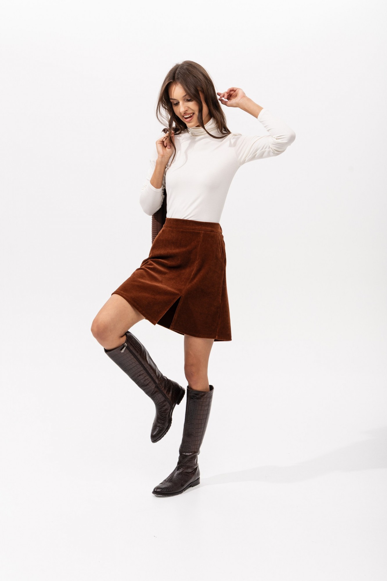 Эта стильная терракотовая юбка-обманка станет настоящей находкой для вашего гардероба! Изготовленная из плотного корда, она подчеркнёт вашу индивидуальность и добавит образу нотки элегантности и современности.