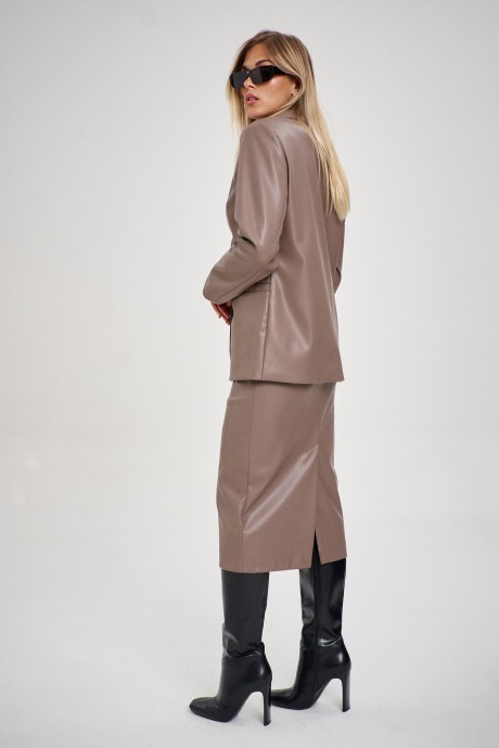 Юбка миди выполнена из мягкой экокожи на замшевой основе, юбка на притачном поясе, посадка высокая , юбка на подкладке. В среднем шве застежка на потайную молнию, сзади разрез - высокая шлица. За счет кроя вытягивает фигуру, а образ делает элегантным.