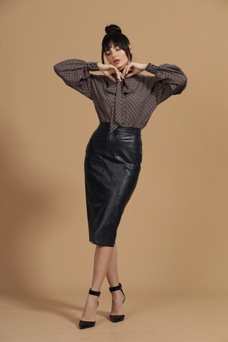 Юбка женская, удлиненная, зауженная к низу .Используется для юбки эко-кожа. Юбка на поясе с резинкой По переду юбки накладные карманы.