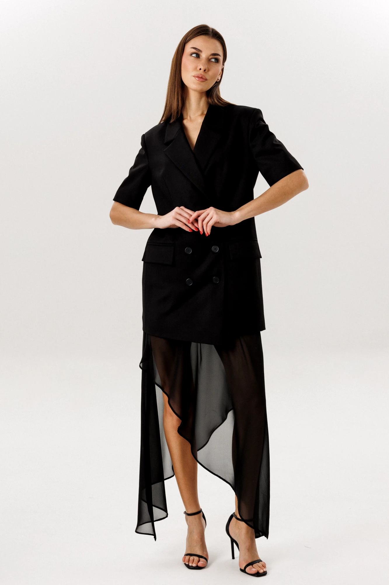 ткань верха -шифон, шортики- креп костюмная, 65% полиэстер, 32% вискоза, 3% спандекс