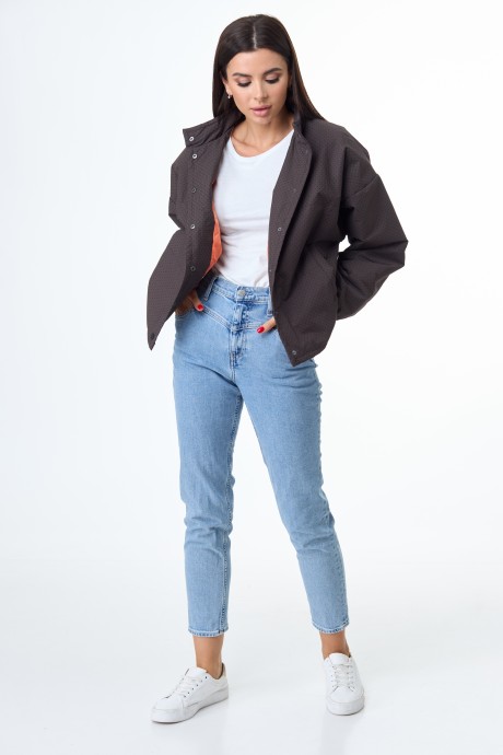 Достаточно объёмная модель с удлинённой линией плеча, широкими рукавами и воротником – стойка.
