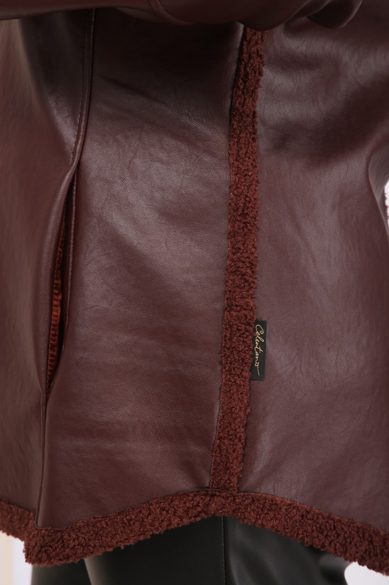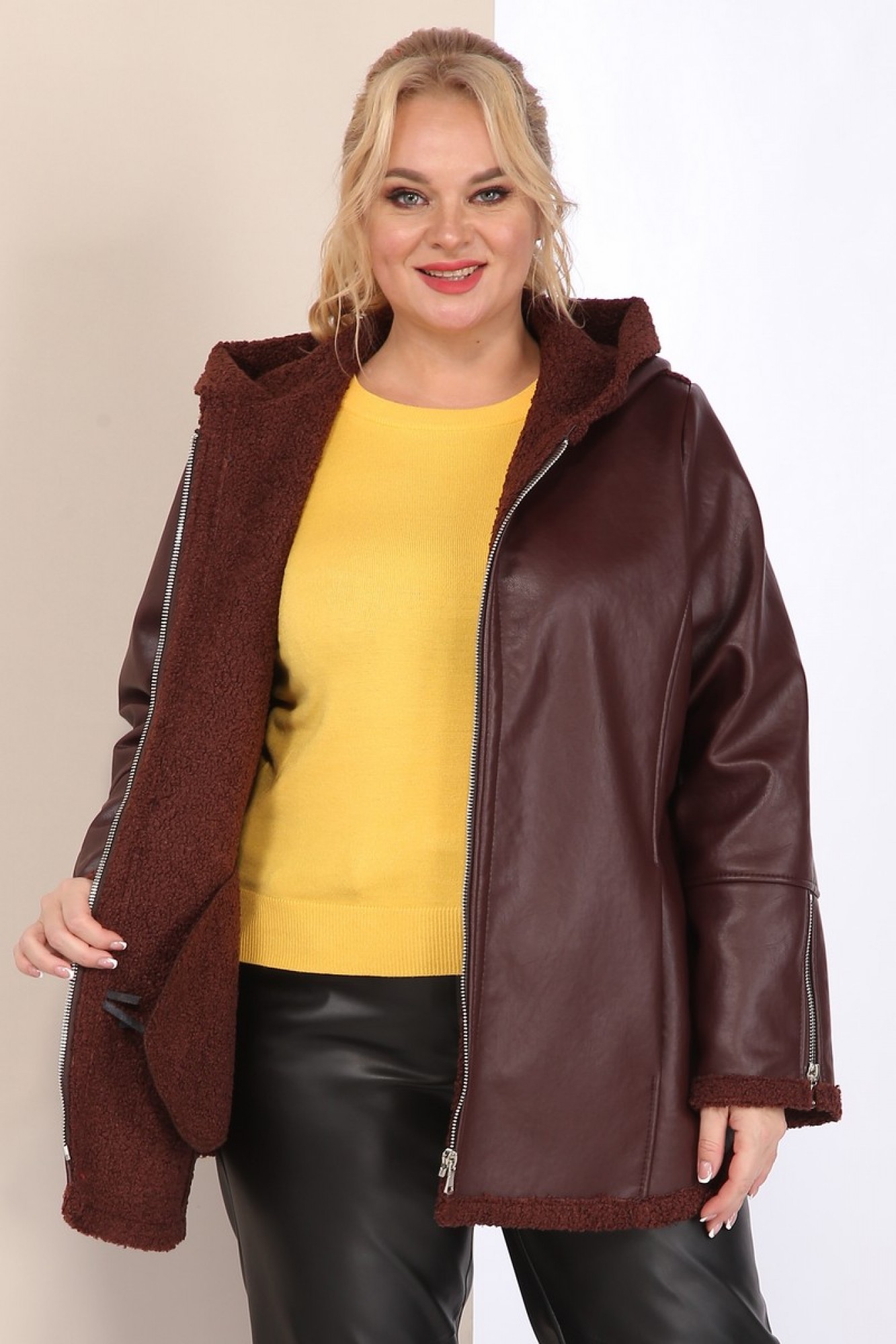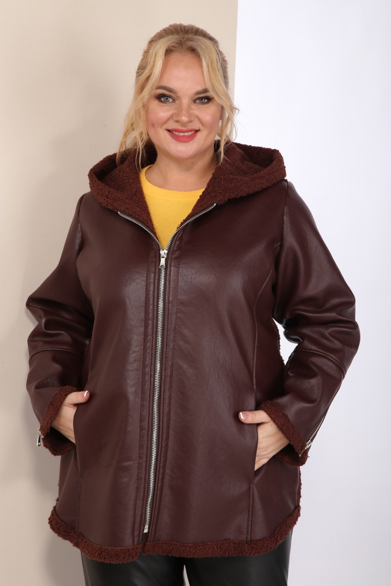 Дубленка женская короткая. Выполнена из экокожи высокого качества. Спинка разрезная, по полочкам обработаны карманы, низ изделия фигурный. Куртка с капюшоном. Рукав втачной, одношовный. Нижняя часть с подрезом, в который вставлена функциональная молния. В модели есть прибавка на верхнюю одежду. Изделие выполнено из высококачественной мягкой экокожи, которая не трескается и не растягивается, в отличие от натуральной кожи. Все молнии на изделии металлические. Куртка без подкладки. По температурному режиму подходит для осени, еврозимы (до небольшого минуса) и весны. Примечание: Перед первой примеркой рекомендуется пройти изнанку (мех) изделия липким роликом для чистки одежды.