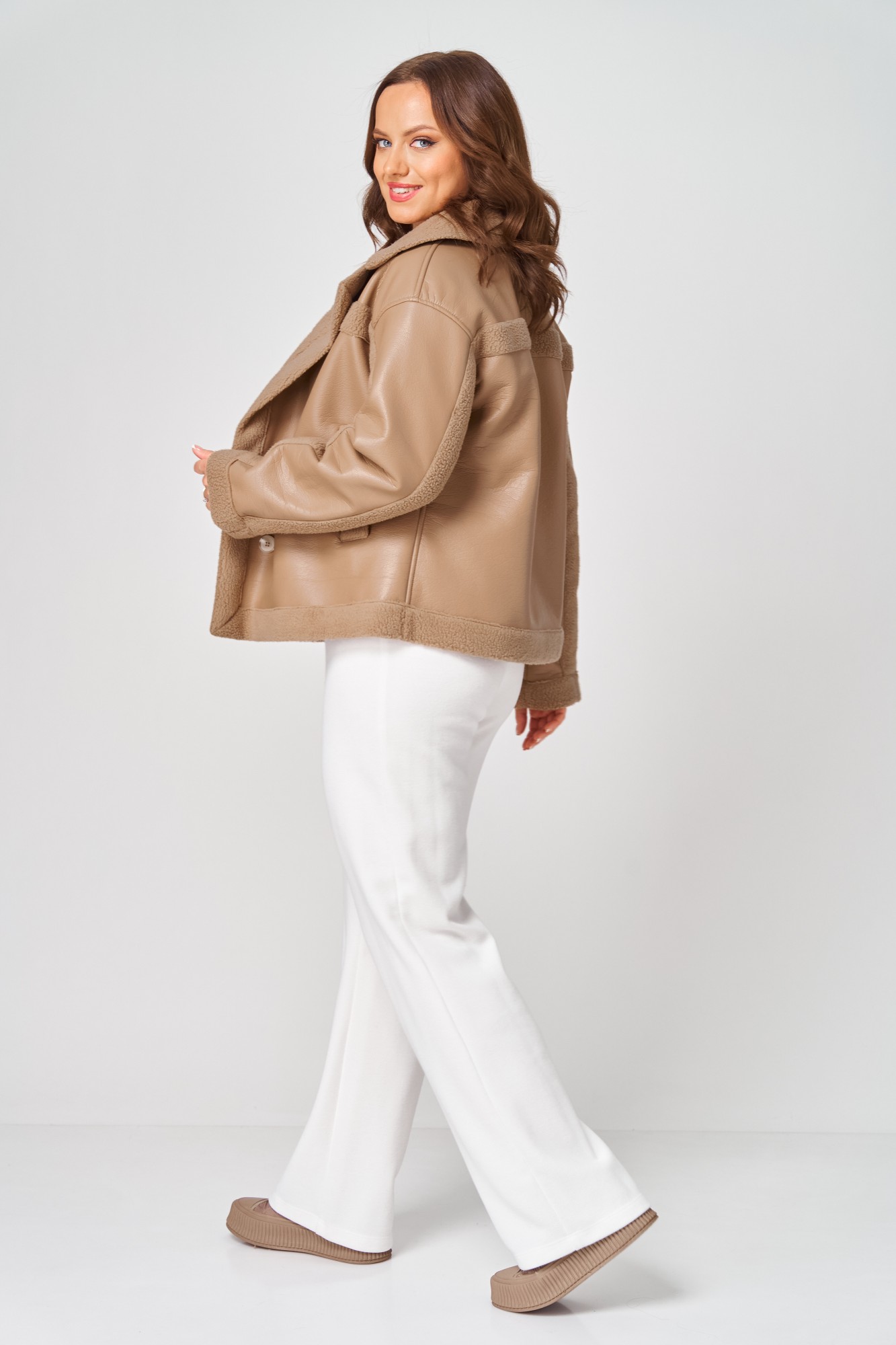 Полупальто женское прямого силуэта с центральной застежкой на петли и пуговицы, линия плеча спущенная. Рукав втачной 2-шовный. Воротник стояче-отложной. Карманы прорезные с надстрочной листочкой. В качестве отделки используются отделочные детали по спинке, переду и рукаву. Температурный режим до 0 градусов.