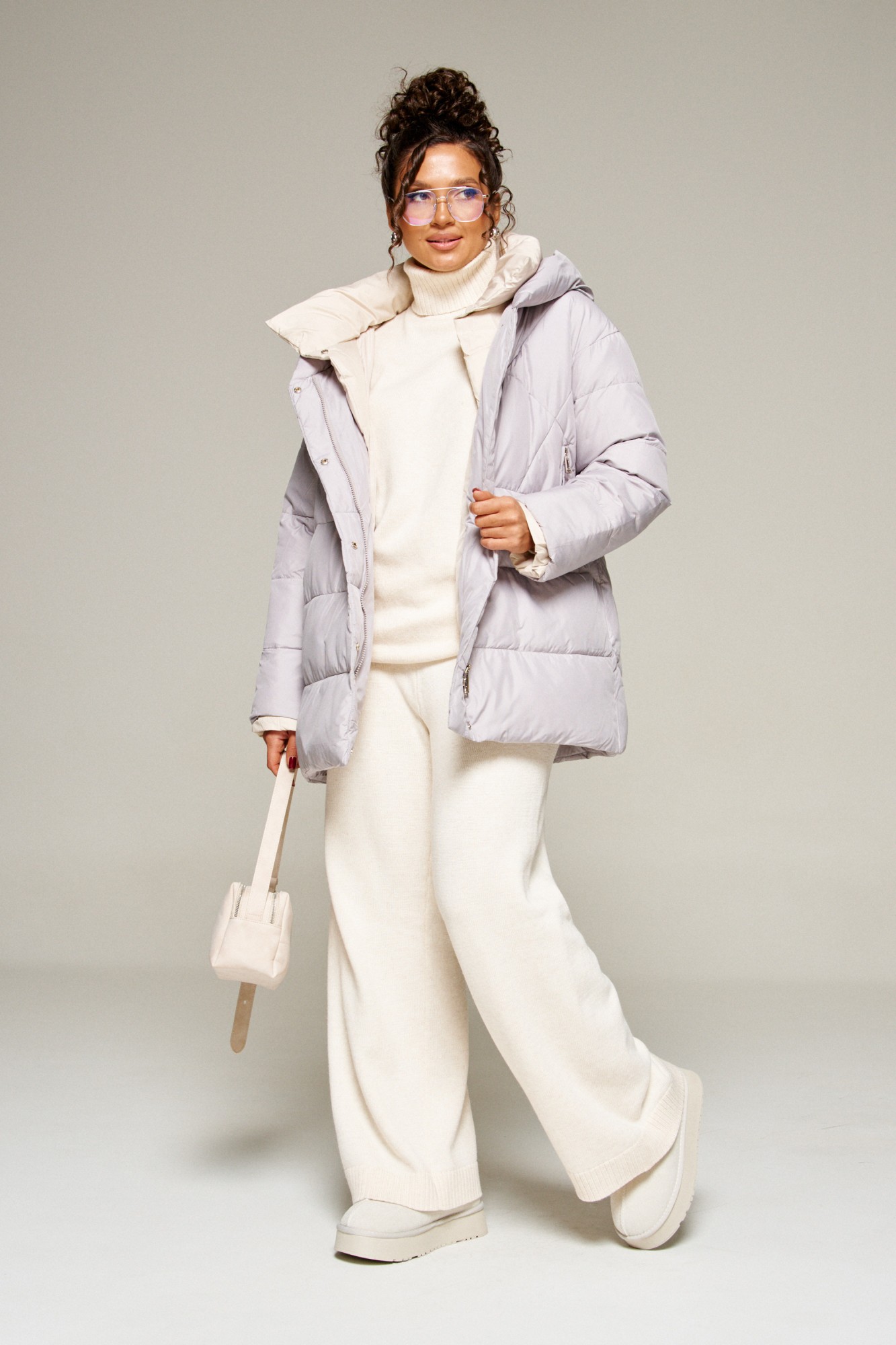 Современный объёмный крой и спущенная линия плеч создают расслабленный актуальный силуэт. А широкий воротник играет роль дизайнерского акцента.