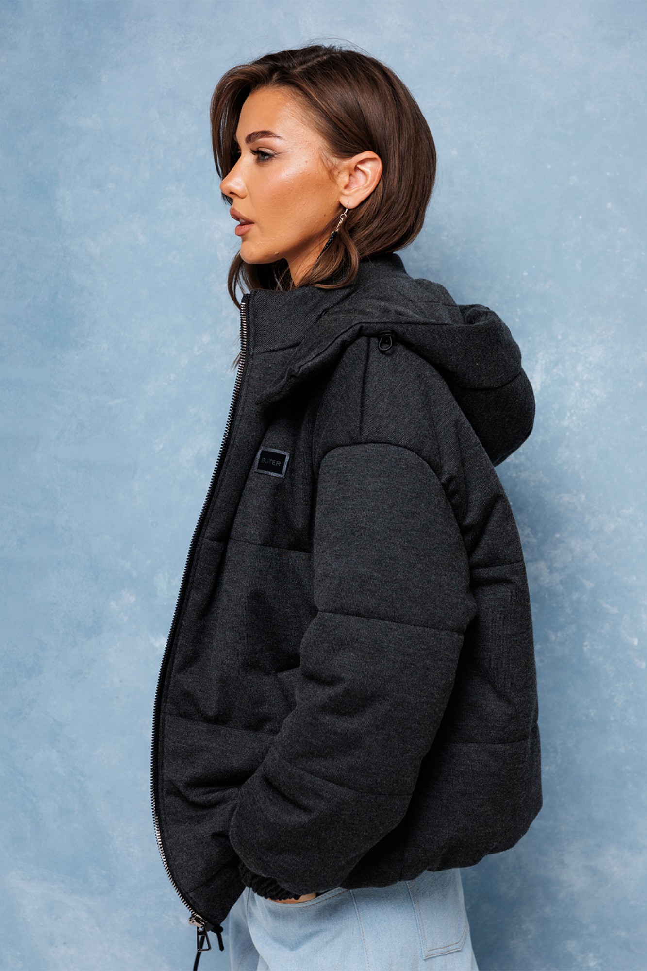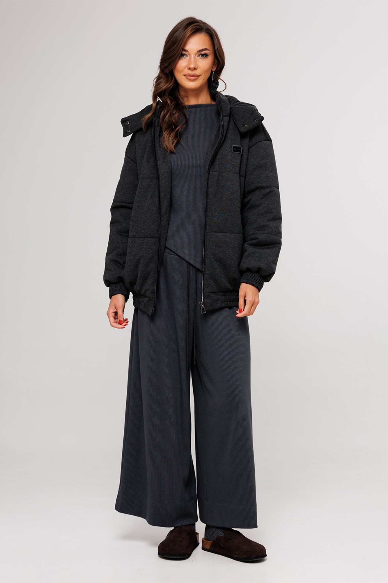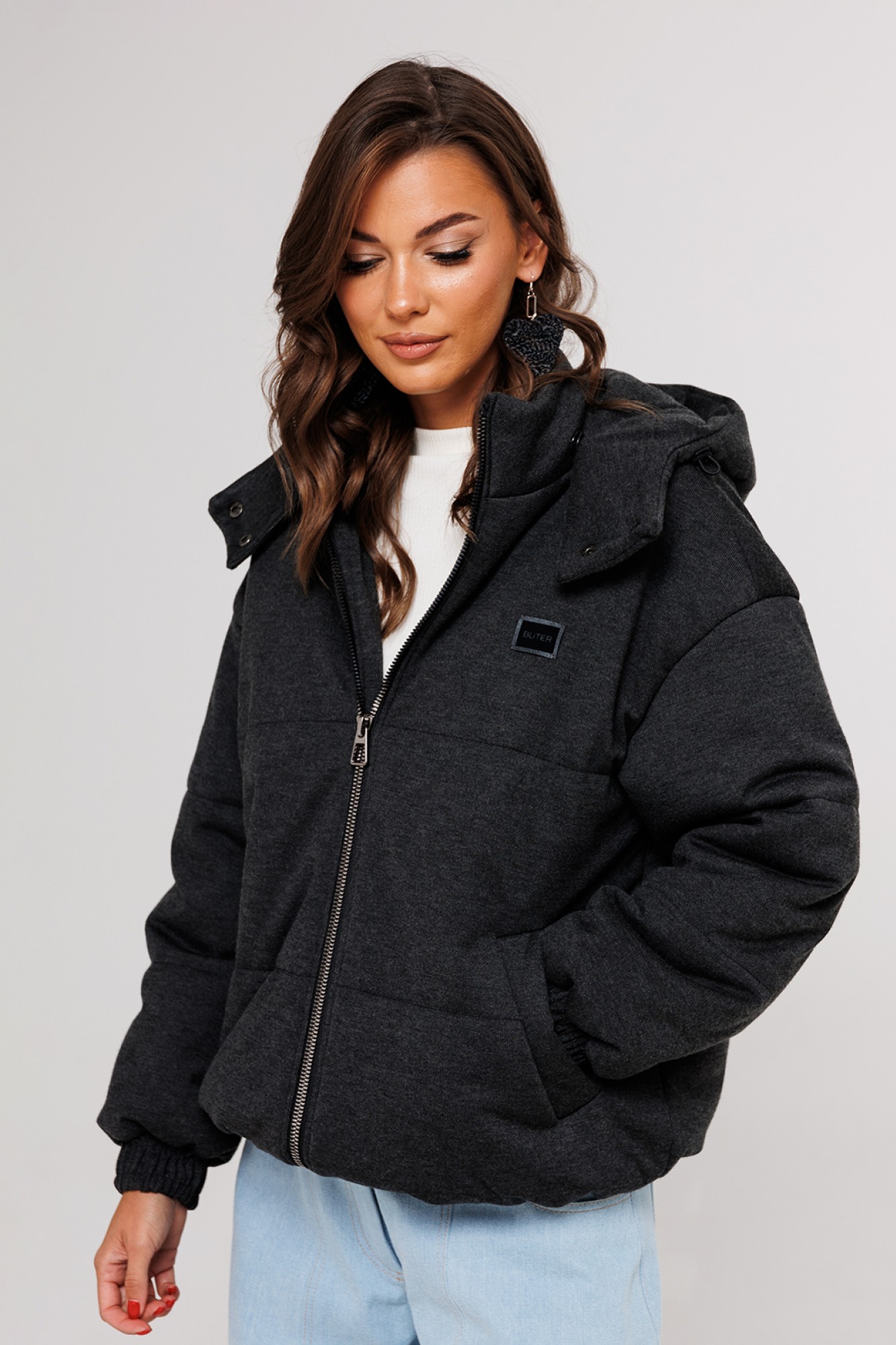 Куртка демисезонная (t до -5С), прямого силуэта, со спущенной линией плеча. Рукав одношовный внизу на приточной отсроченной планке из основной ткани на резинке. Полочка с центральной застежкой на тесьму-молнию и карманом-листочкой и нашивкой "BUTER". По низу куртки притачная отстроченная планка из основной ткани на резинке. Воротник стойка и пристегивающимся к ней на пришивные кнопки капюшоном со вставленной в него эластичной тесьмой с фиксаторами с застежкой на кнопки. На капюшоне нашивка "BUTER" Куртка из трикотажного полотна с пропиткой со стежкой на синтепоне (isosoft 150г/м²) и подкладке.