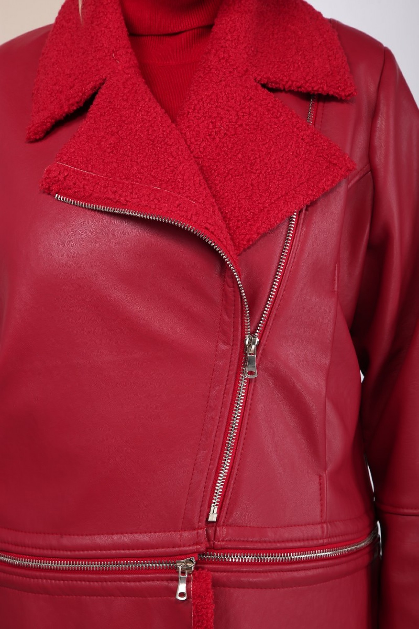 Изделие выполнено из высококачественной мягкой экокожи, которая не трескается и не растягивается, в отличие от натуральной кожи. Все молнии на изделии металлические. Пальто без подкладки.