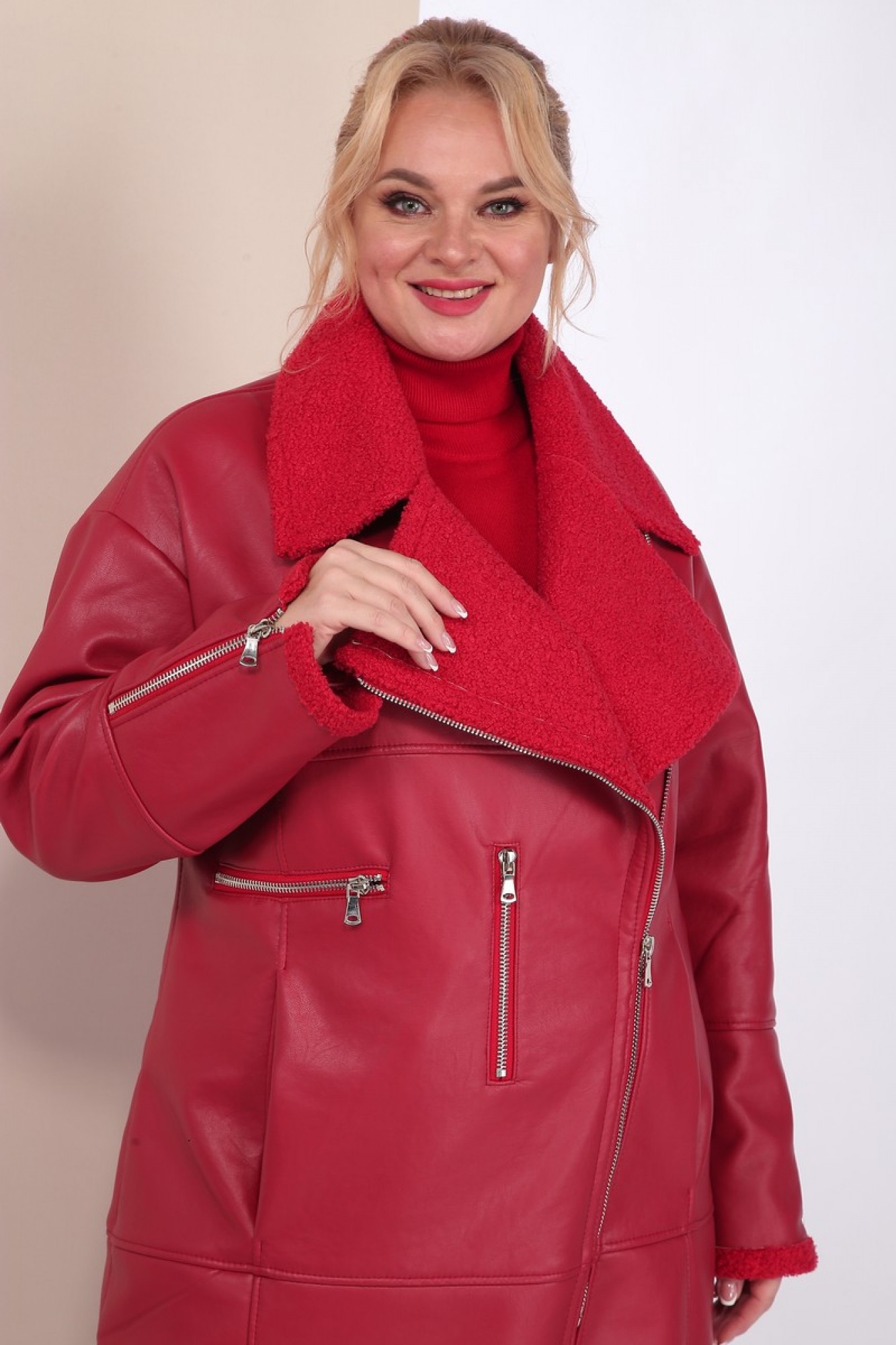 Рост модели 174 см. На фото куртка сфотографирована с нашими брюками из экокожи 2004.