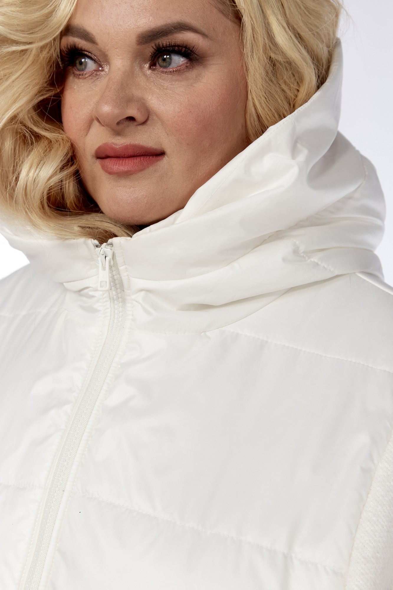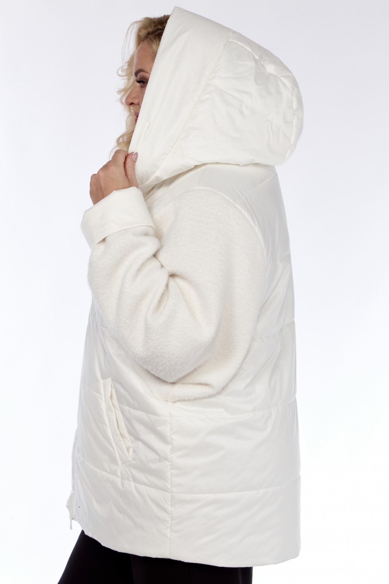 Стильная женская куртка, полуприлегающего силуэта с центральной застежкой на тесьму-молнию. По переду прорезные карманы с листочкой. Спущенная линия проймы. Рукав втачной одношовный из отделочной ткани, длинный с отворотом по низу. Капюшон с отделочной деталью по отлету, объемный. Куртка на подкладке. Используется основной материал -плащевка (плотность 70 гр/м2). В качестве отделки -теплая ткань с мягким ворсом. Утеплитель Hoopon (плотность 150 г/м2). Подходит под температурный режим до -5 градусов. Для отделки используется фурнитура и отделочная строчка.