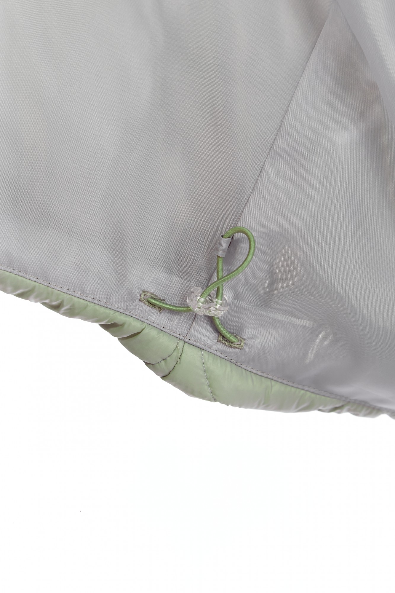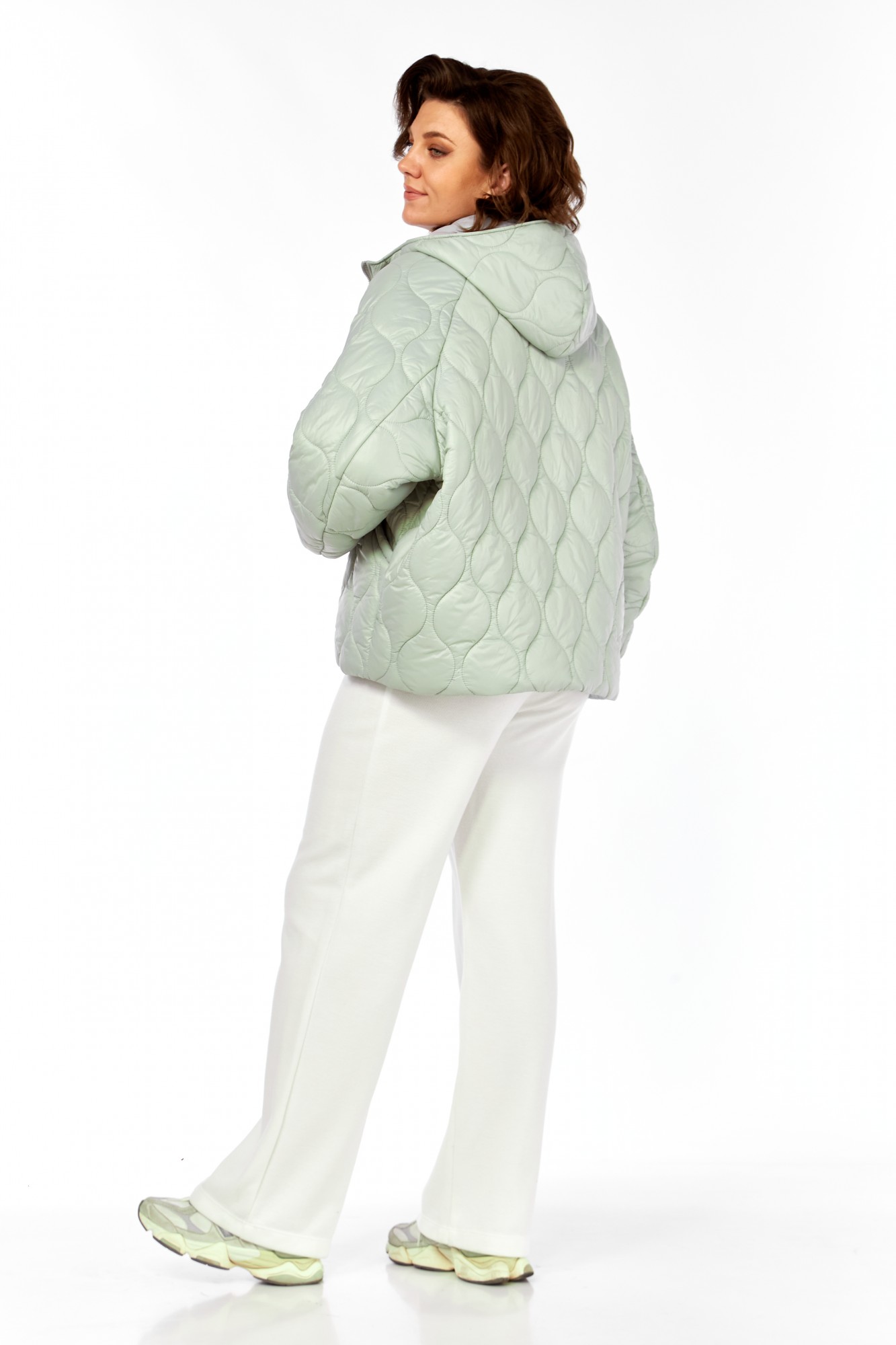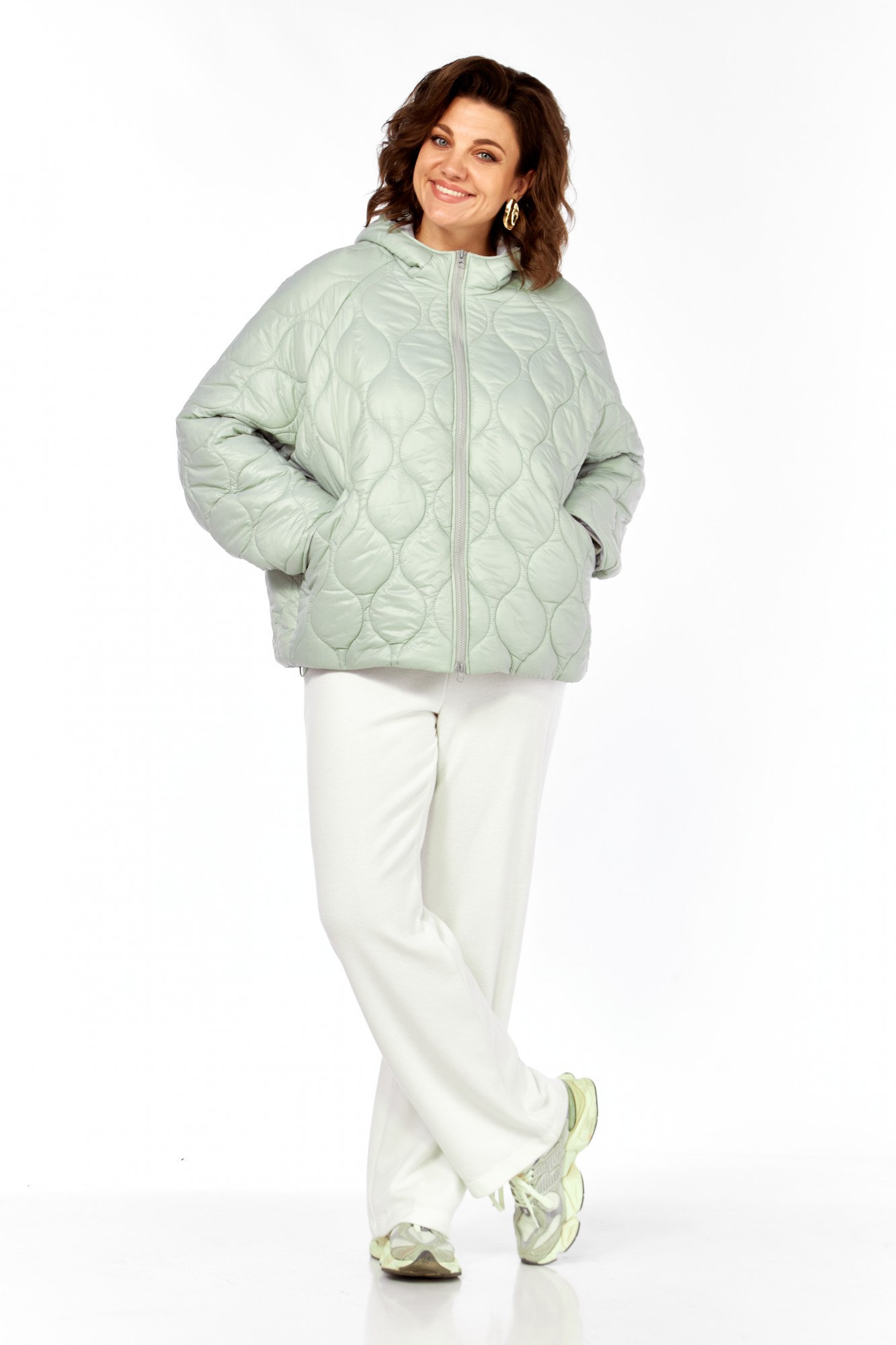Куртка женская, О-образного силуэта с центральной застежкой на молнию. Спинка простая. Перед с боковыми карманами "с листочкой". Рукав-реглан . Воротник-капюшон. По низу куртки в подкладке обработана кулиса со шнуром и регулятором. Куртка на утеплителе. Температурный режим до -5 градусов.