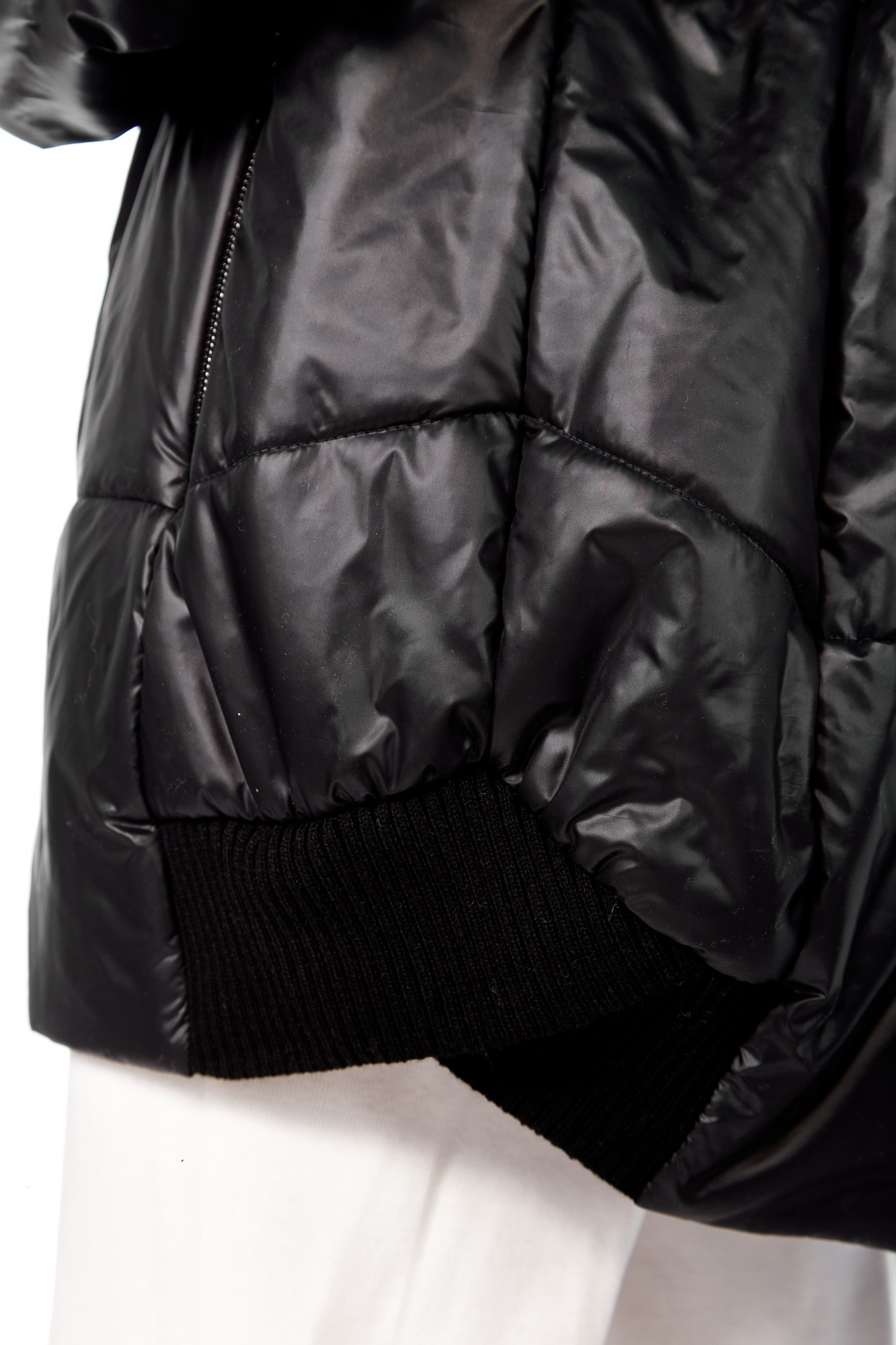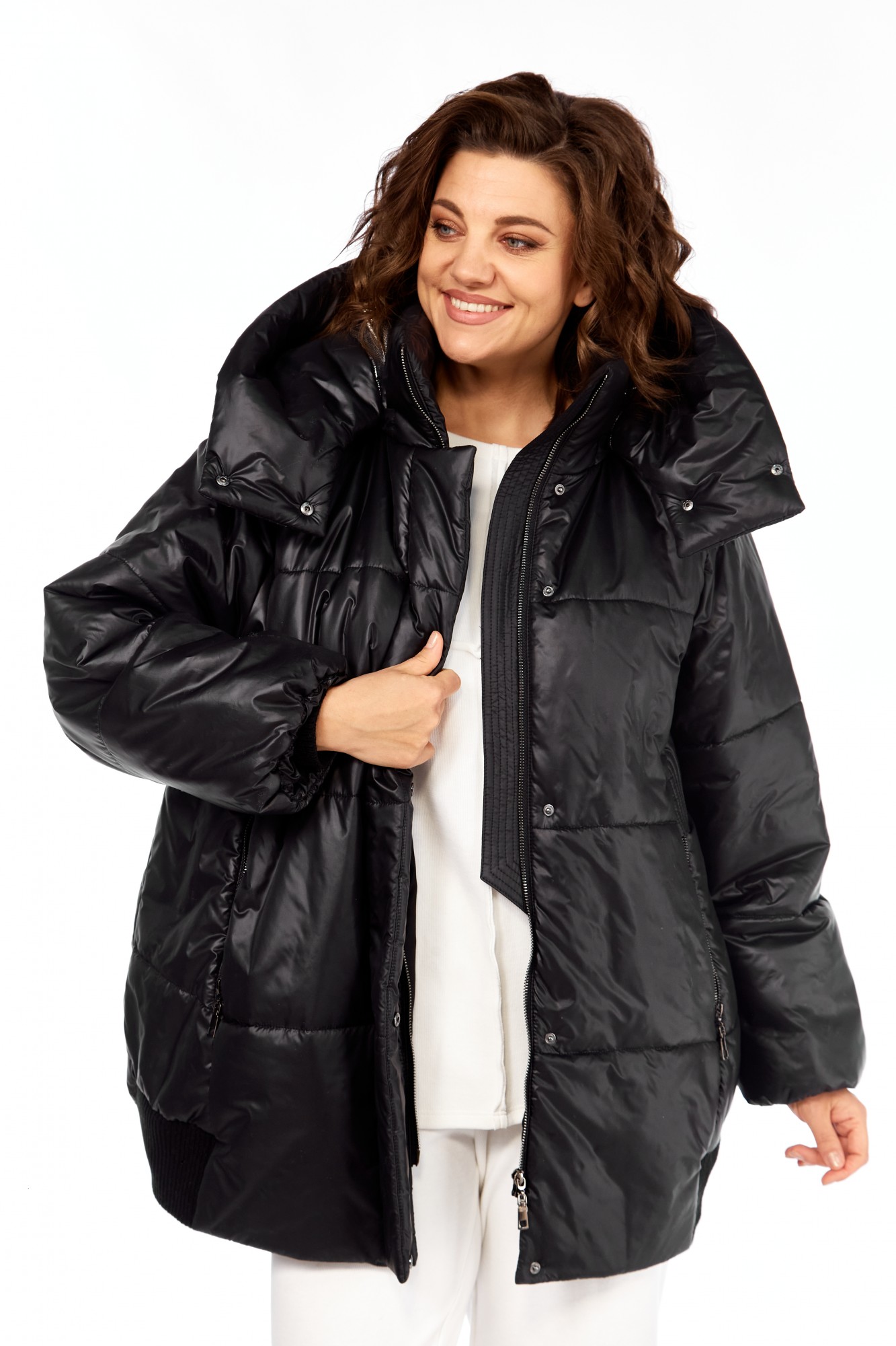 Куртка женская, прямого силуэта с рукавом реглан. Застежка центральная на тесьму молнию и планку с кнопками. По спинке рельефные швы. По переду рельефные швы, в швах карманы с молнией и отделочной деталью, по низу боковых швов-довяз. Рукав реглан с вытачкой и манжетом(довяз)- по низу. Воротник стойка. Капюшон с центральной частью, с отделочной деталью по отлету (застежка на кнопки)-съемный, фиксируется с помощью кнопок. На центральной части под молнией -ветровик. В качестве отделки используется фурнитура и детали. Температурный режим до -10 градусов.