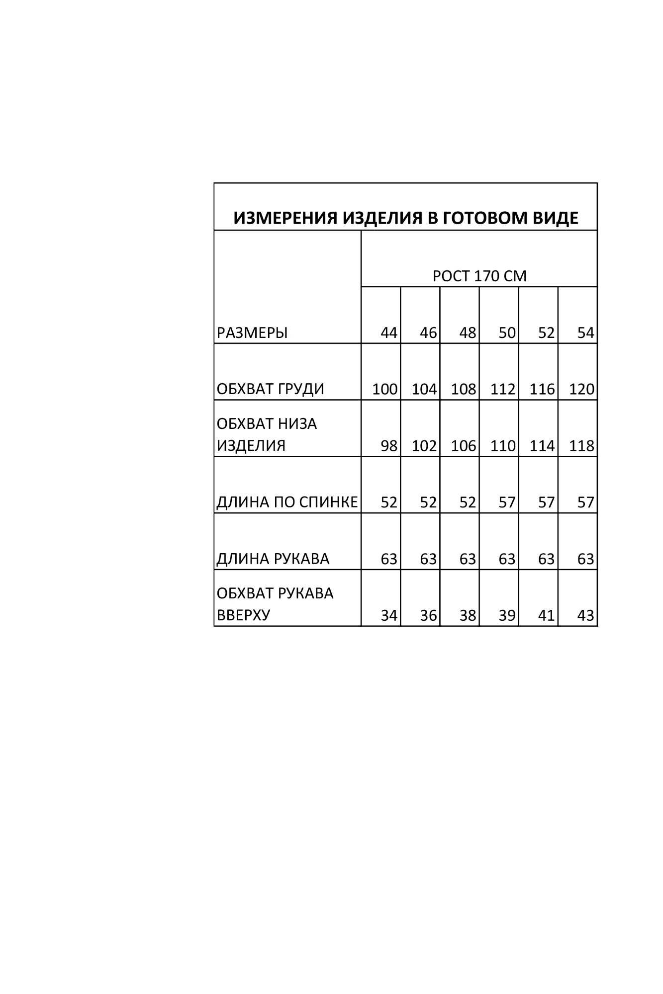 52 (размеры 44-48), 57 (размеры 50-54)