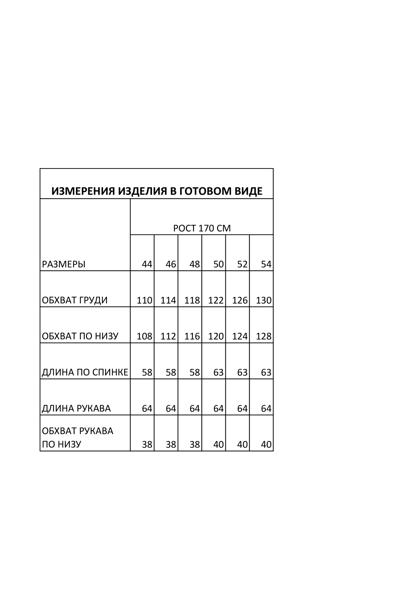 58 (размеры 44-48), 63 (размеры 50-54)