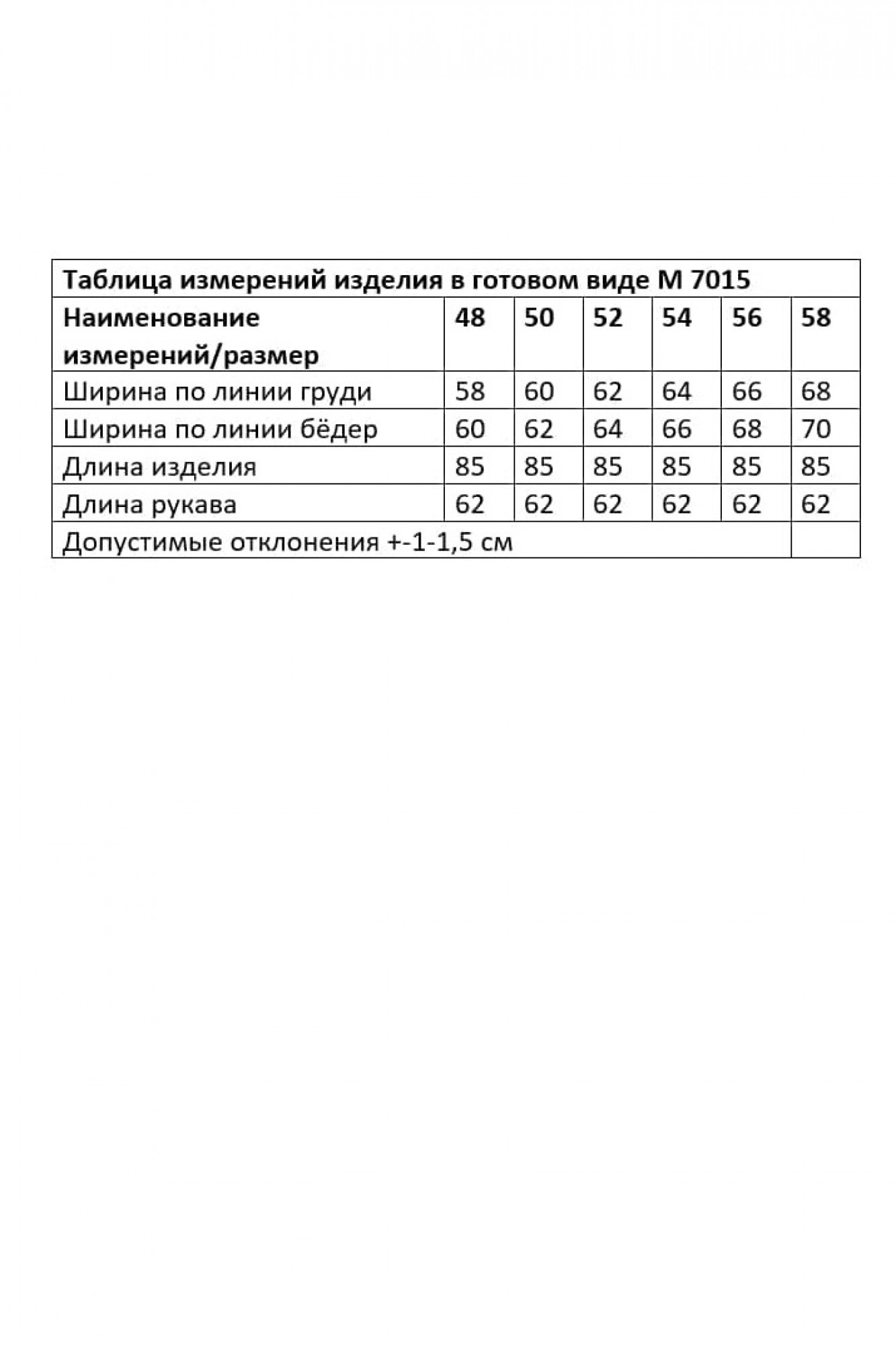 Таблица размеров