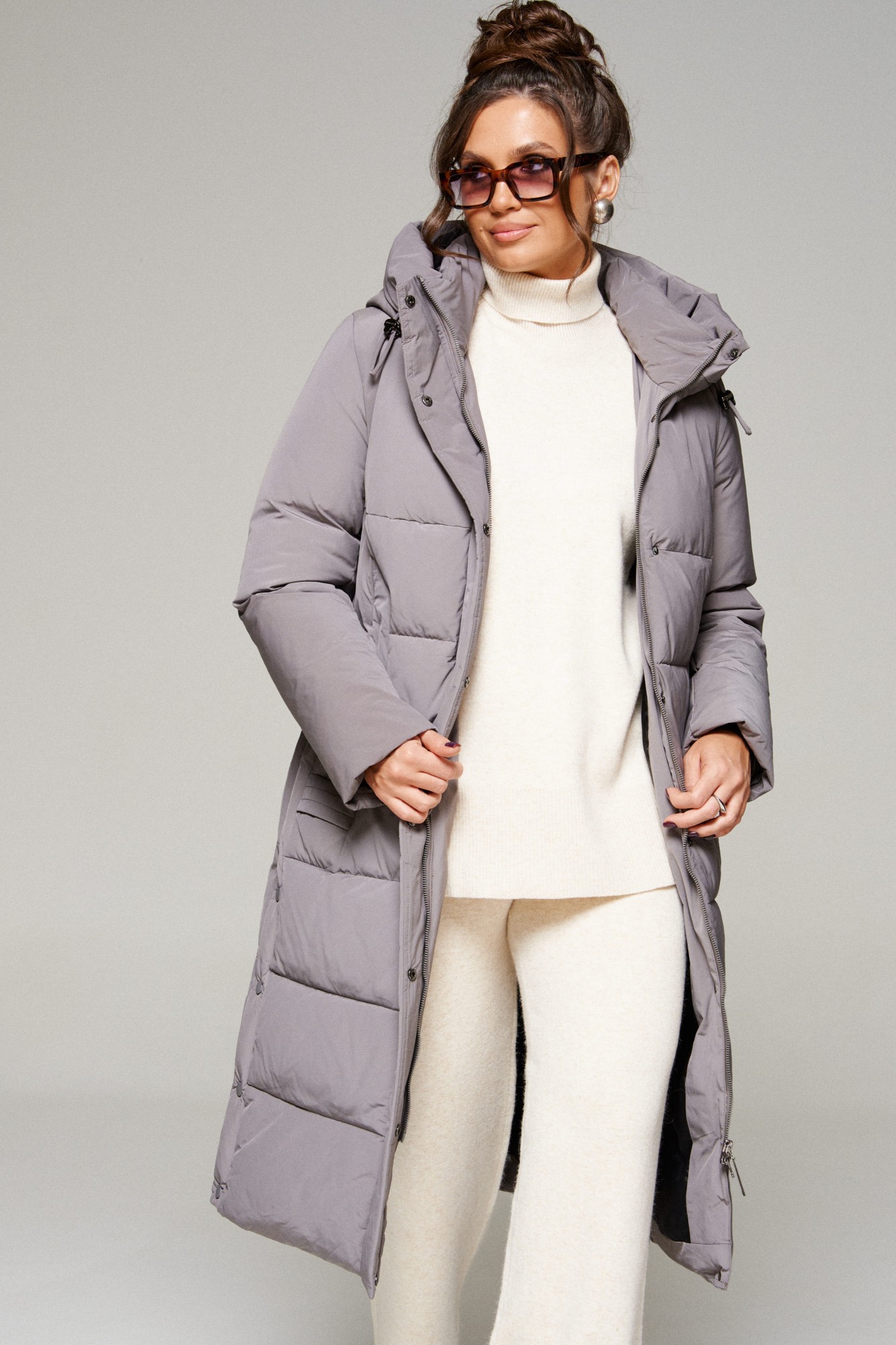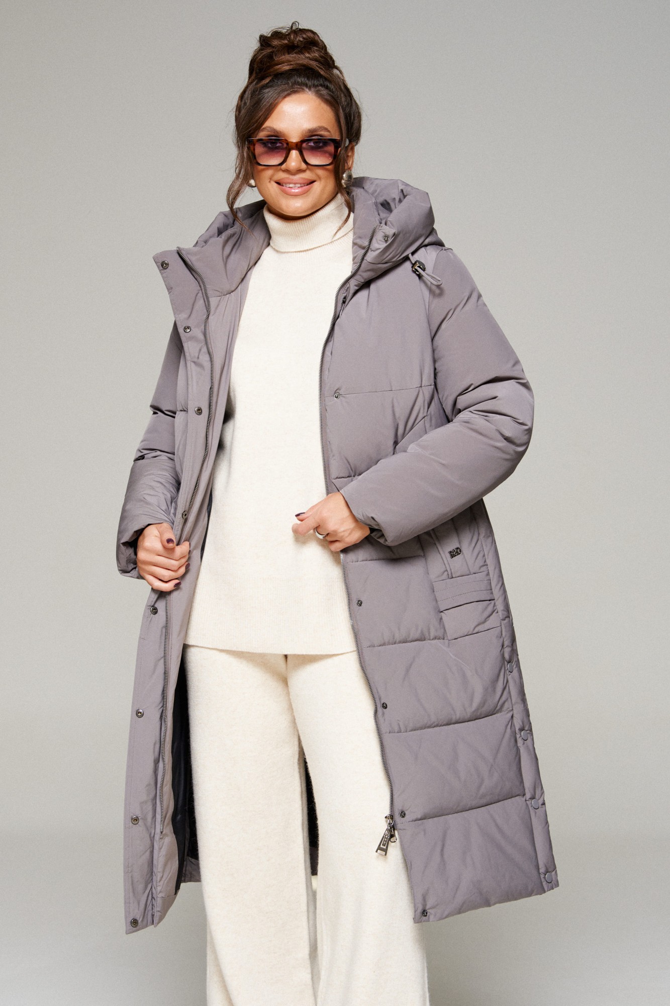 Зимнее, стеганое пальто прямого силуэта для ценителей стиля и практичности. Это отличное сочетание современных материалов и точного кроя. Лёгкое, удобное и классическое пальто подходит для холодных дней, обеспечивая тепло и комфорт в зимнюю и осеннюю пору года. Идеально сочетает в себе сдержанность и расслабленность, универсальность и гармоничность. Пальто выполнено из прочной, влагостойкой и приятной на ощупь полиэфирной ткани; на синтетической подкладке. Утеплитель холлофайбер 200 г/м. кв. предназначен для использования изделия при температурном режиме от -10 до -20 градусов. Модель прямого силуэта, базового кроя; предназначена для повседневной носки. Перед с подрезной кокеткой и с центральными симметричными вставками-карманами с широкой обтачкой, фиксируемые на кнопку и переходящие в декоративную отстроченную деталь. На левом кармане прикреплен отделочный металлический элемент. Застежка центральная на молнию под ветрозащитной планкой с кнопками. Молния двусторонняя от верхнего края капюшона не доходит до низа изделия 14 см. Спинка без среднего шва с рельефами от кокетки. Рукав длинный втачной двухшовный. По низу внутри рукава предусмотрена дополнительная вставка в виде притачной трикотажной манжеты. Воротник стойка, прилегающий к шее, что обеспечивает особый комфорт при носке. Капюшон закрытого типа, притачной по горловине. По периметру капюшона протянут шнур в цвет изделия с декоративными фиксаторами. Низ изделия ровный. В боковых швах выполнены шлицы с фиксацией на кнопки в цвет изделия. Подкладка гладкая с наличием внутреннего кармана слева.