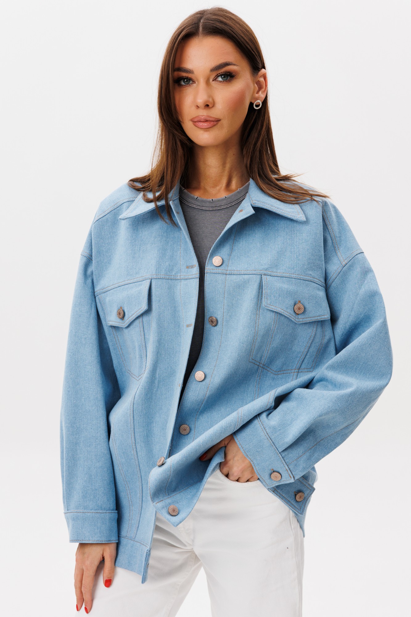 Прочный деним гарантирует износостойкость и комфорт, а свободный крой позволяет легко сочетать жакет с худи, платьями, брюками или шортами. Идеальный выбор для тех, кто ценит баланс между утилитарностью и смелым самовыражением.