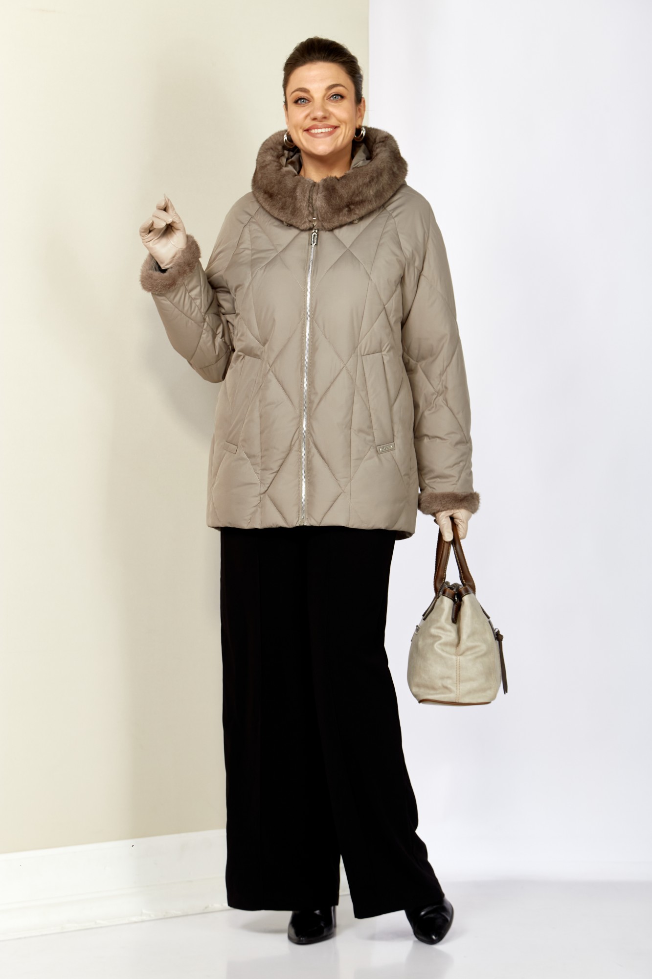 Уютная, элегантная зимняя куртка станет любимой вещью Вашего гардероба! Куртка выполнена из мягкой, матовой курточной ткани с водоотталкивающим эффектом. На качественной сатиновой подкладке из поливискозы. В качестве утеплителя используется «Холлофайбер» (специально разработан для зимних курток) производство Бельгия с плотностью 200 г/кв.м.. Утеплитель по своим характеристикам легкий и прекрасно держит тепло. По переду прорезные карманы с декоративным элементом на магнитах. Рукав реглан. Застежка центральная на тесьму-молнию. Капюшон и отвороты рукавов выполнены из меха, максимально по внешнему виду приближенного к натуральному «Норка», что придает изделию элегантность.