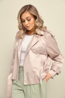 Лёгкая куртка-тренч свободного объёма прямого силуэта с застёжкой на пуговицы. Пояс съемный, продевающийся через шлевки.