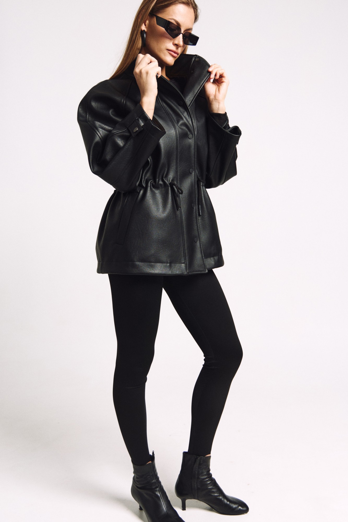 Утепленный кожаный жакет-парка со стойкой. Широкий рукав, ширина которого регулируется кнопками. Очень плотная экокожа. Хорошо держит форму. Подкладка утеплена Isosoft 100. Два универсальных размера - S (соответствует 42-44-46), L (соответствует 48-50-52).