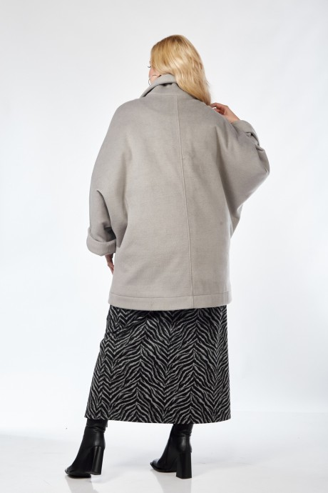 Свободное пальто с цельновыкроенными рукавами типа "летучая мышь" и высоким воротником-стойкой. На передних деталях обработаны накладные карманы, спинка со средним швом. Застёжка центральная на кнопки. Низ рукавов с отворотами притачных манжет. Изделие на утеплённой подкладке.