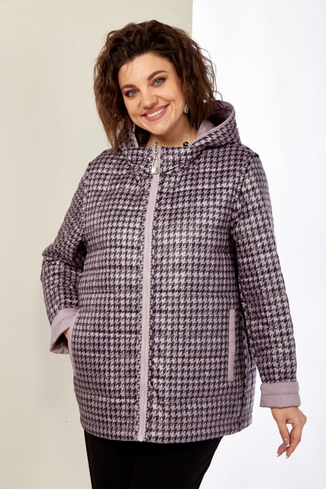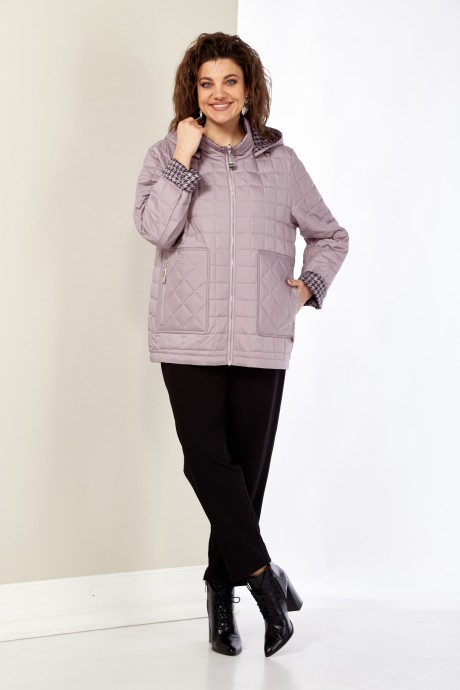 По переду, однотонной стороны изделия, стёжка квадратами и функциональные, накладные карманы на молнии. Капюшон съемный на пуговицах, регулируется при помощи кулиски. Рукав втачной, двухшовный, длина регулируется с помощью отворота.