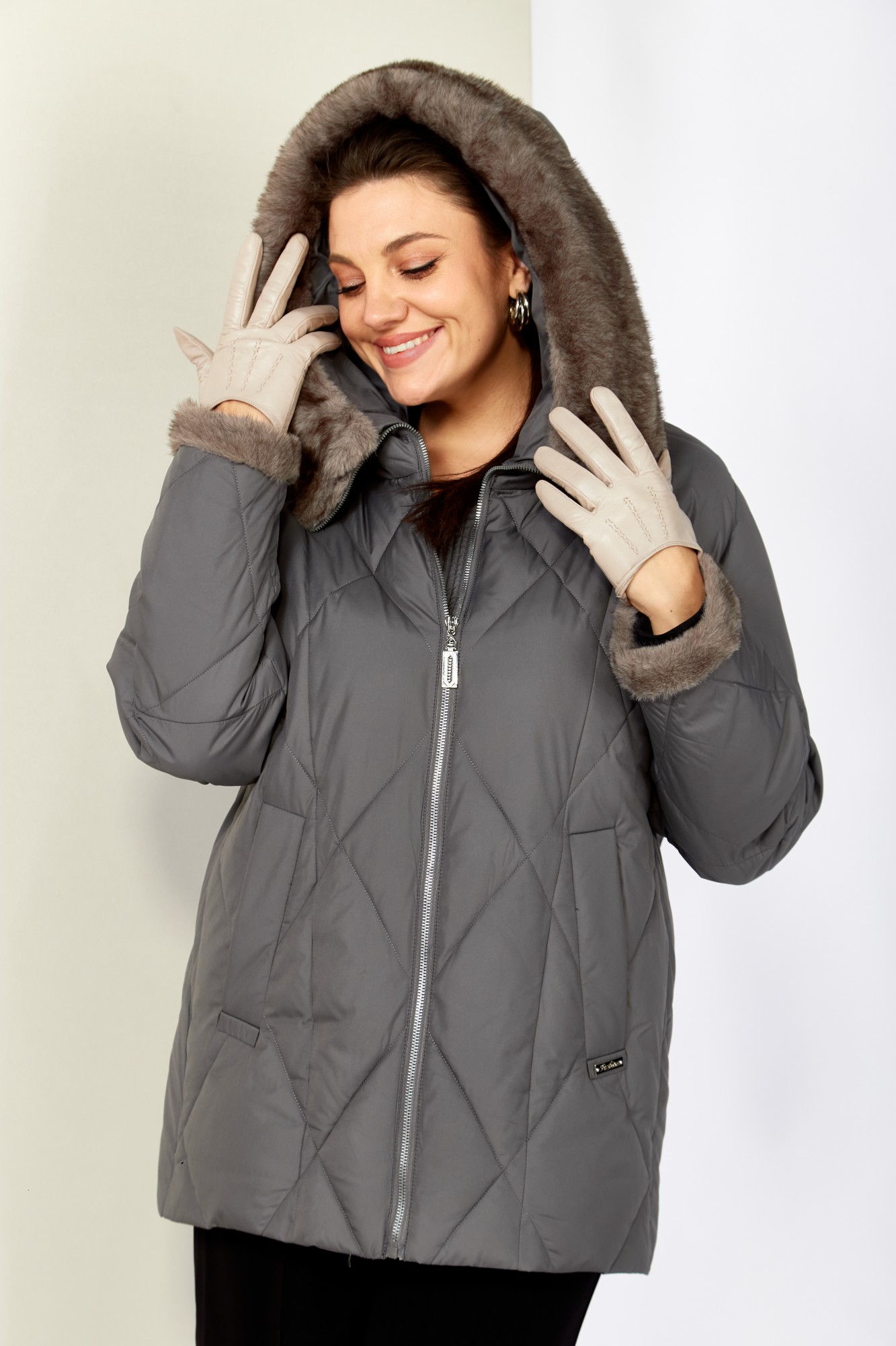 Уютная, элегантная зимняя куртка станет любимой вещью Вашего гардероба! Куртка выполнена из мягкой, матовой курточной ткани с водоотталкивающим эффектом. На качественной сатиновой подкладке из поливискозы. В качестве утеплителя используется «Холлофайбер» (специально разработан для зимних курток) производство Бельгия с плотностью 200 г/кв.м.. Утеплитель по своим характеристикам легкий и прекрасно держит тепло. По переду прорезные карманы с декоративным элементом на магнитах. Рукав реглан. Застежка центральная на тесьму-молнию. Капюшон и отвороты рукавов выполнены из меха, максимально по внешнему виду приближенного к натуральному «Норка», что придает изделию элегантность.