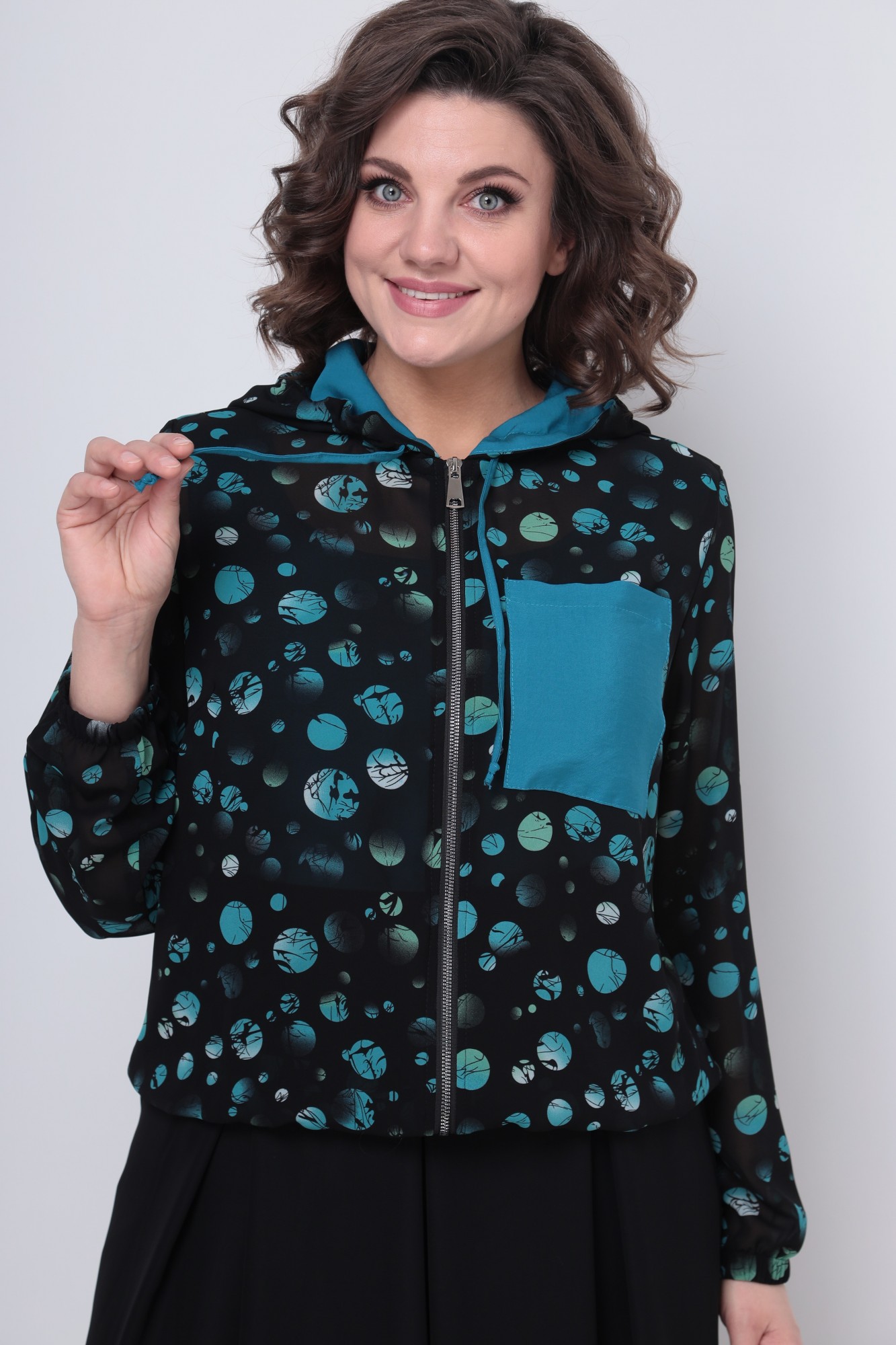 Шикарная нарядная куртка, выполнена из шифоновой ткани. По переду вставлена молния. На спинке капюшон. Рукав втачной длинный с манжетой из резинки на конце. Низ тоже заканчивается манжетой.