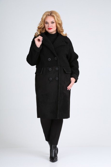Пальто женское полуприлегающего силуэта со смещённой двубортной застёжкой на петли- пуговицы с открытыми бортами. Отрезное по линии талии по переду рельефные швы от подреза до низа, в рельтефахобработаны карманы. По спинке средний шов на нижней части. Рукав втачной 2-шовный. Вортник стояче-отложной. В качестве используется фурнитура.