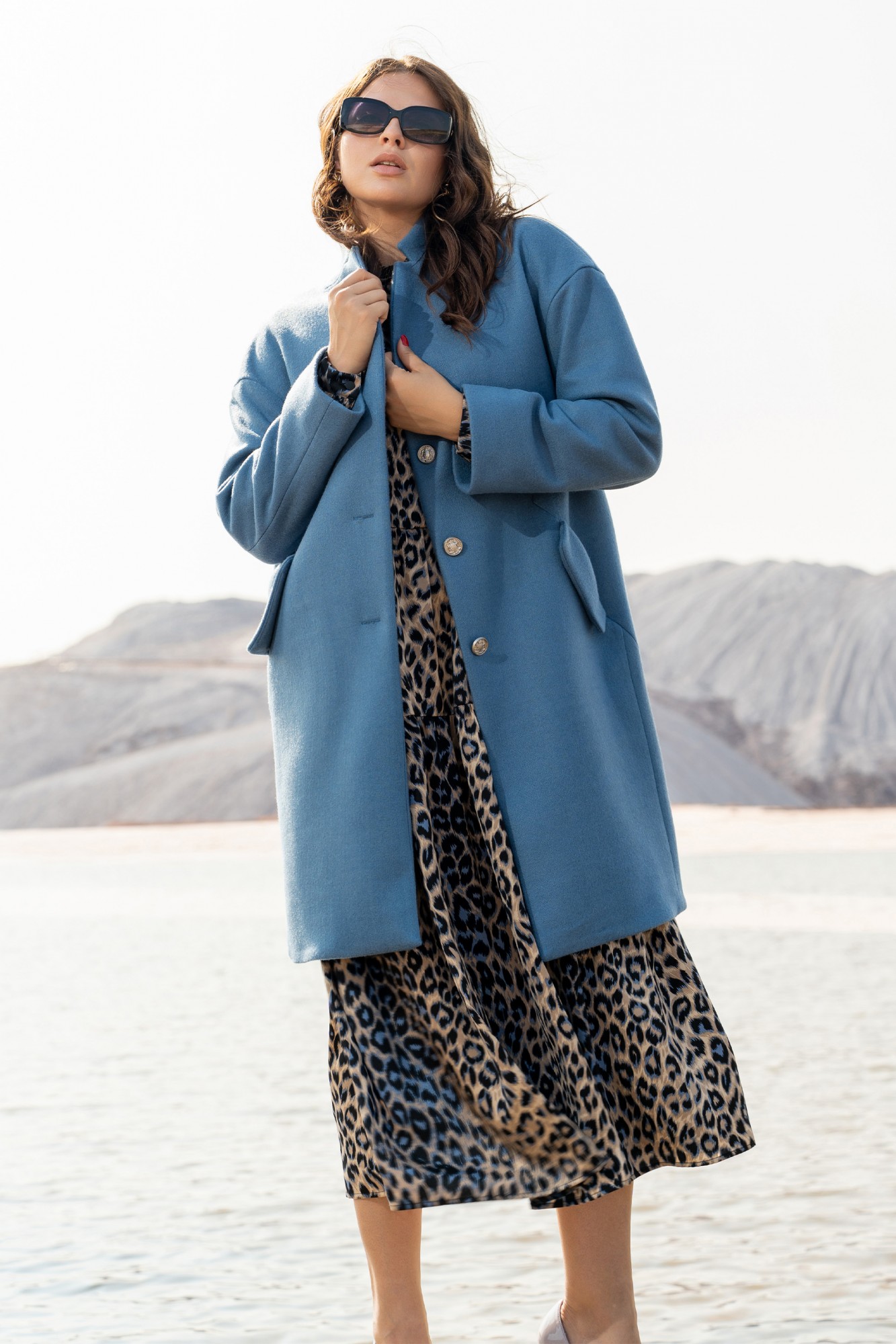 Пальто женское современного покроя, на подкладке, с центральной бортовой застёжкой на три петли и металлические пуговицы, с пиджачным воротником. На полочках обработаны карманы с клапанами и фигурные подрезы. Спинка со средним швом и фигурными подрезами. пальто демисезонное свободного покроя. Очень современное и комфортное для модниц.