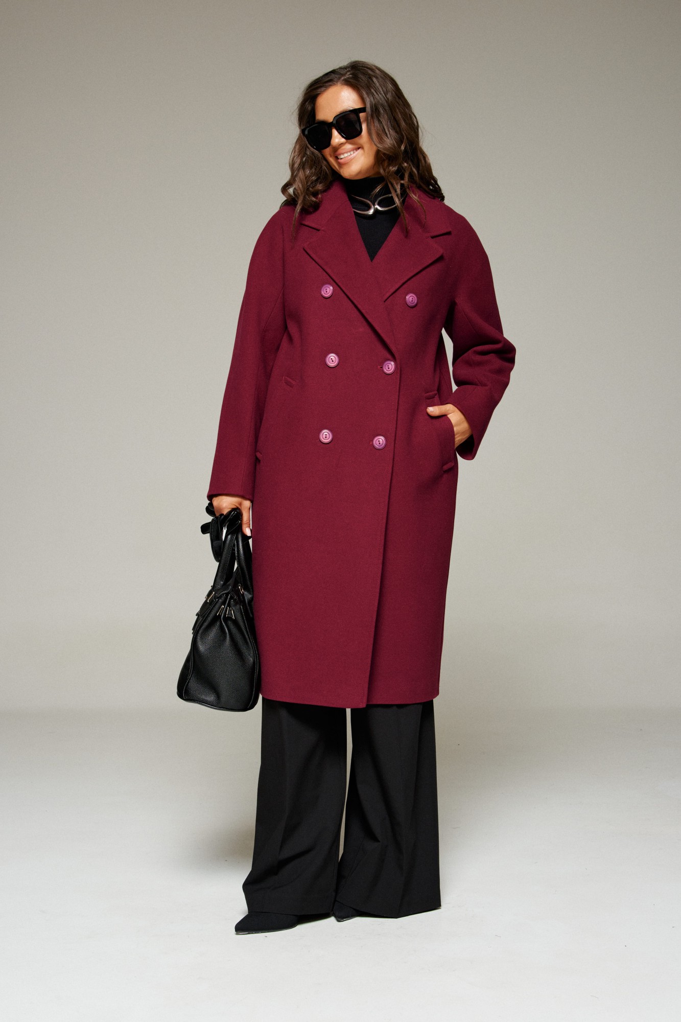 Пальто выполнено из шерстяной ткани, которая обеспечивает теплоизоляцию и защиту от ветра и влаги, подходит для межсезонья и теплой зимы. Двубортное, на подкладке. Изделие рассчитано на температурный режим от +10 до -5 градусов. Модель прямого силуэта, чуть расширенная к низу, покроя «летучая мышь»; предназначена для повседневного использования.