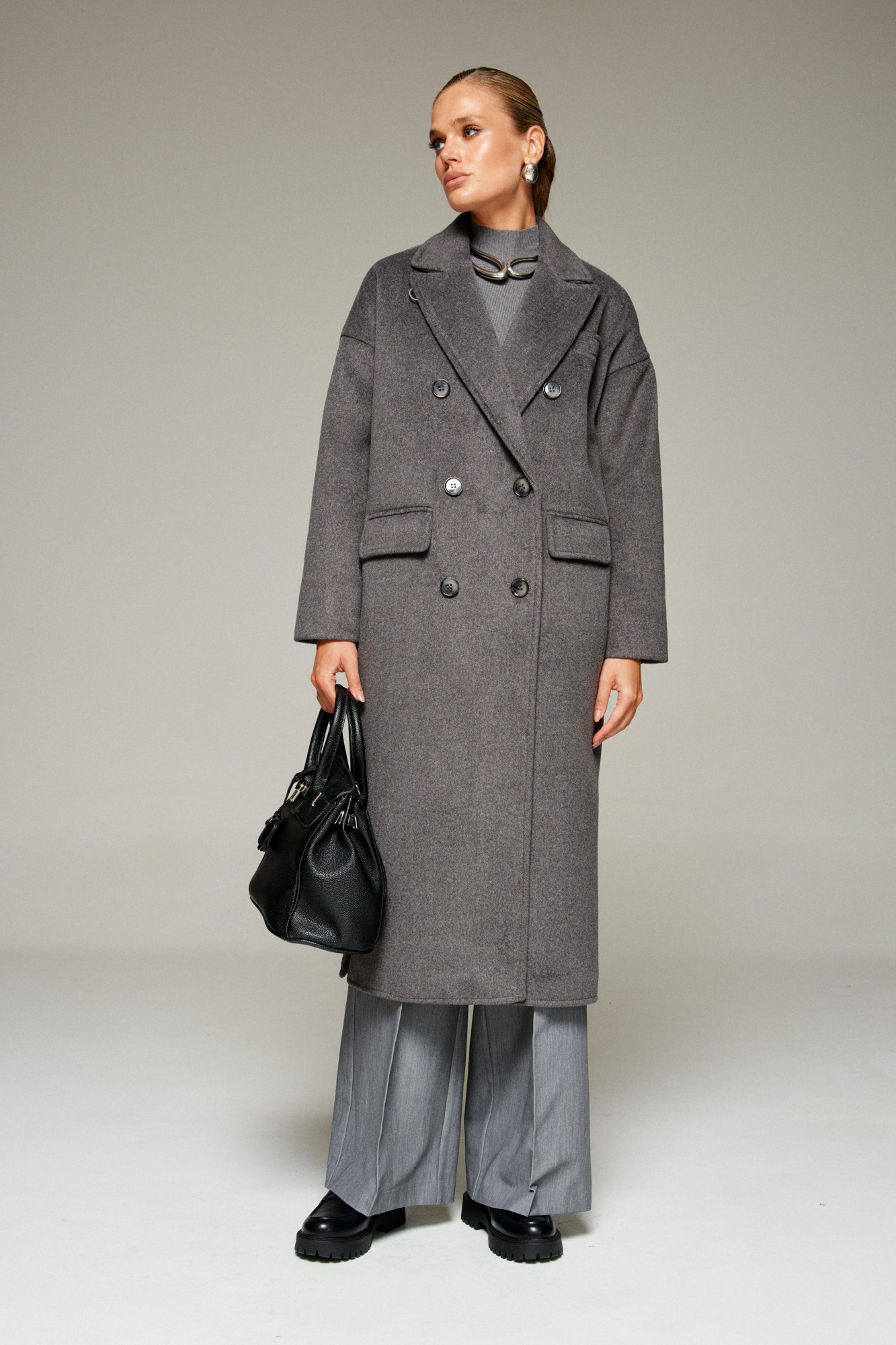 Пальто выполнено из шерстяной ткани, которая обеспечивает теплоизоляцию и защиту от ветра и влаги, подходит для межсезонья и теплой зимы. Двубортное, на подкладке. Изделие рассчитано на температурный режим от +10 до -5 градусов. Модель прямого силуэта с удлиненной линией плеча, предназначена для повседневного использования.