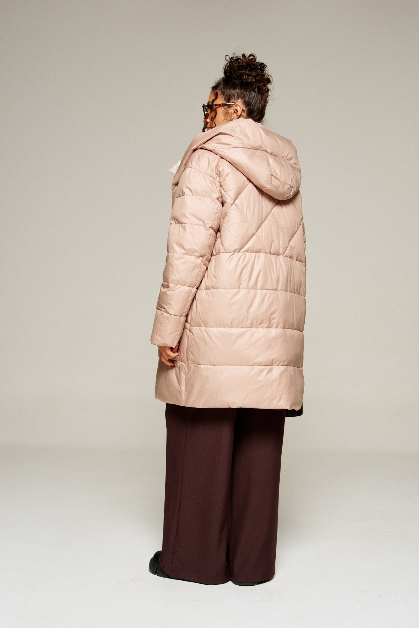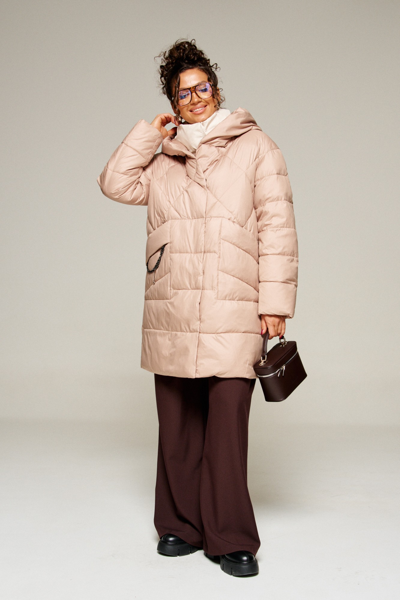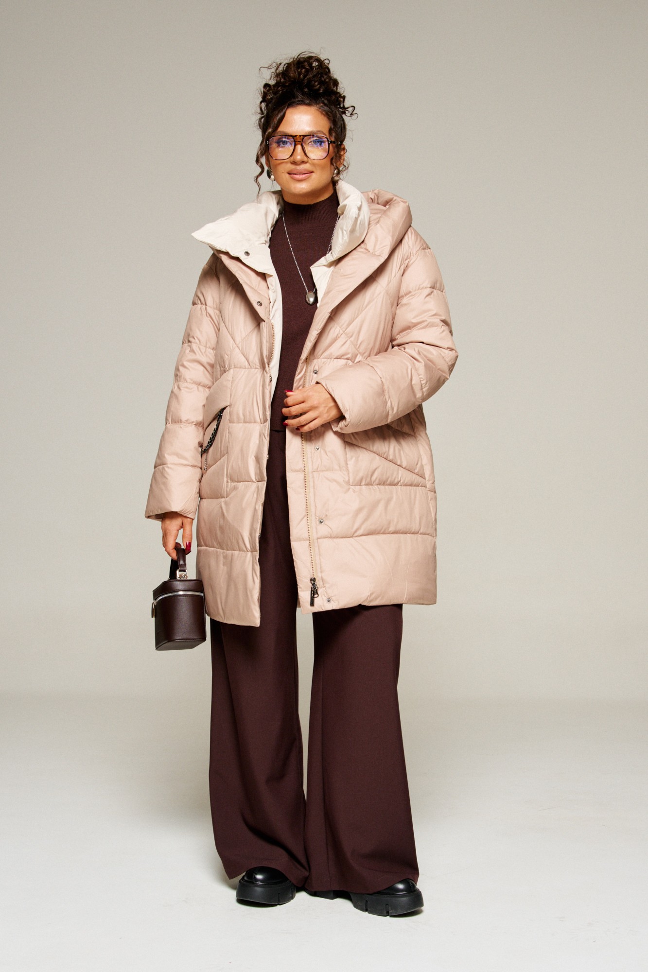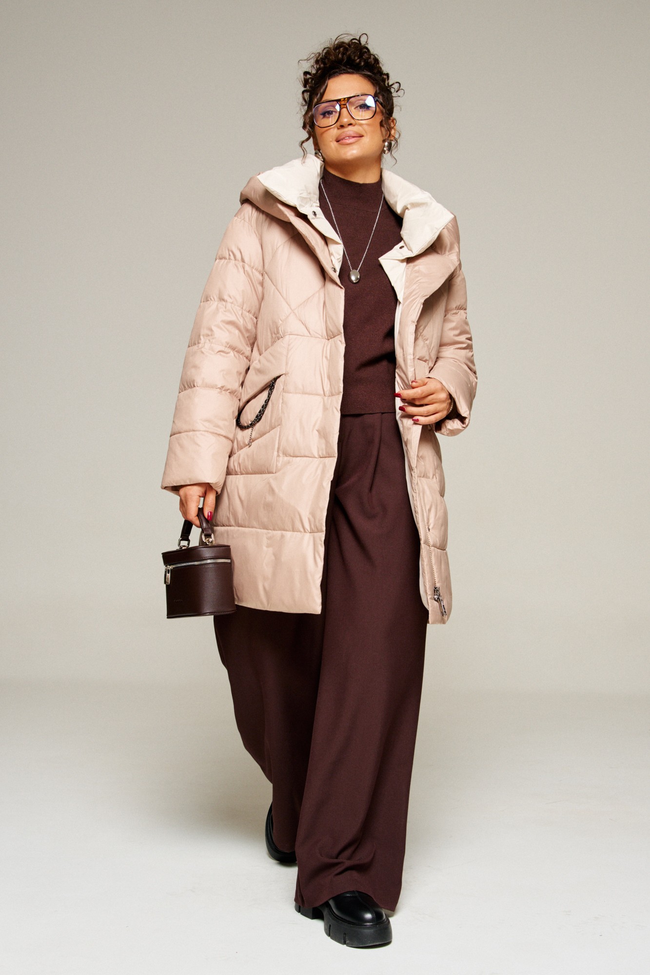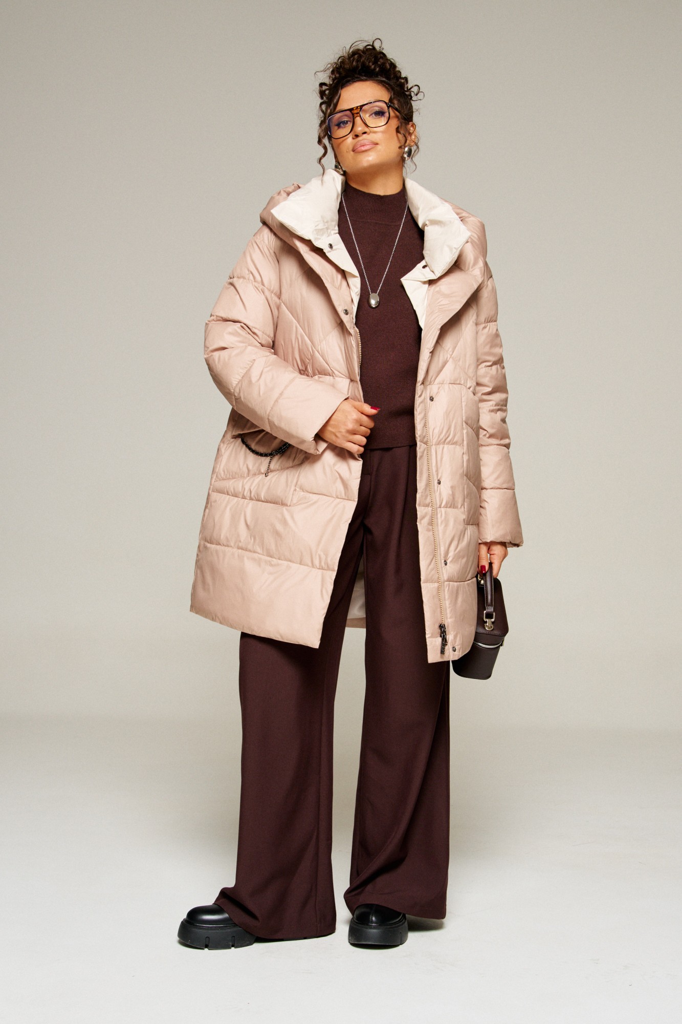 Современный объёмный крой и спущенная линия плеч создают расслабленный актуальный силуэт. А широкий воротник играет роль дизайнерского акцента.