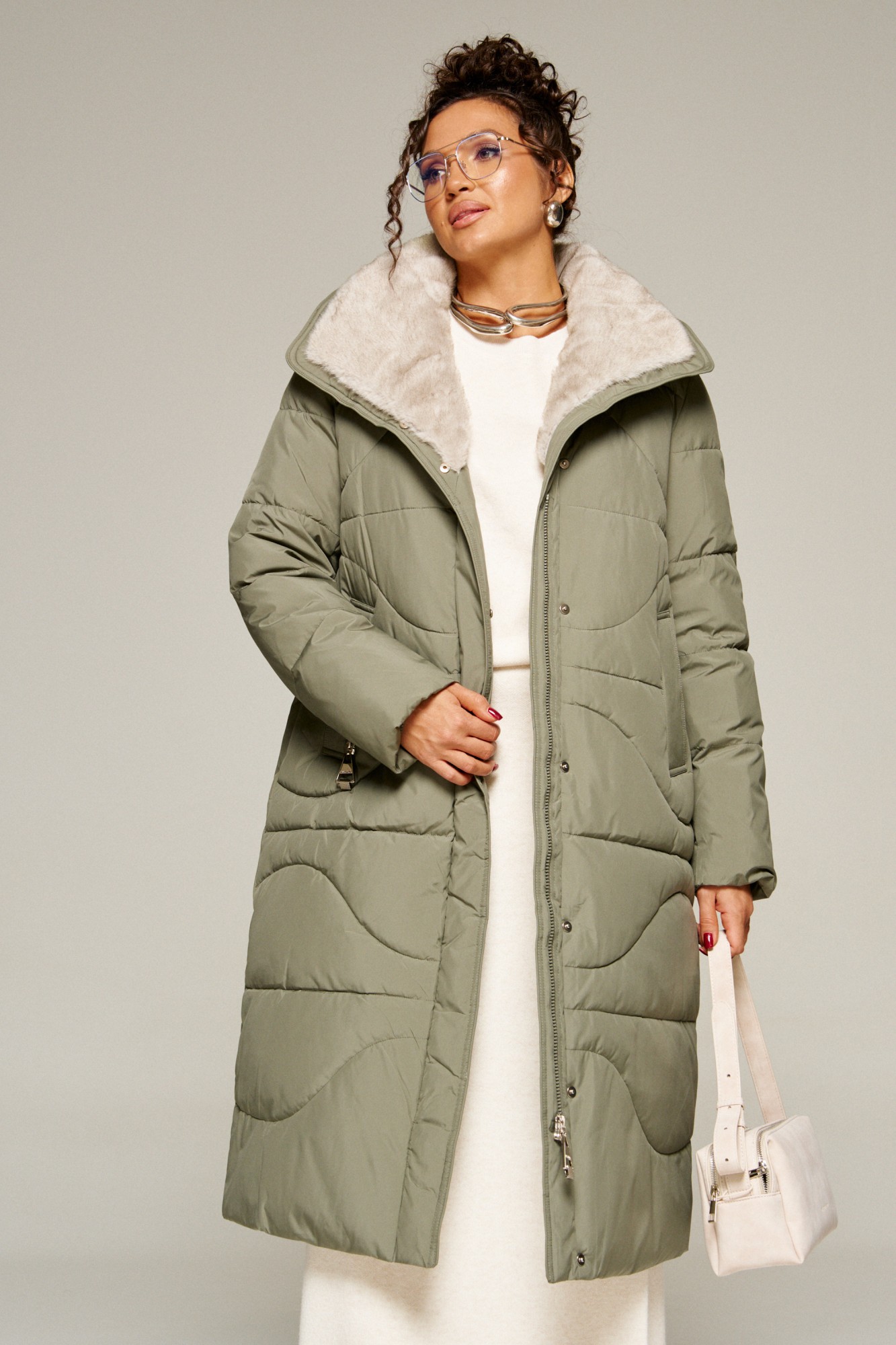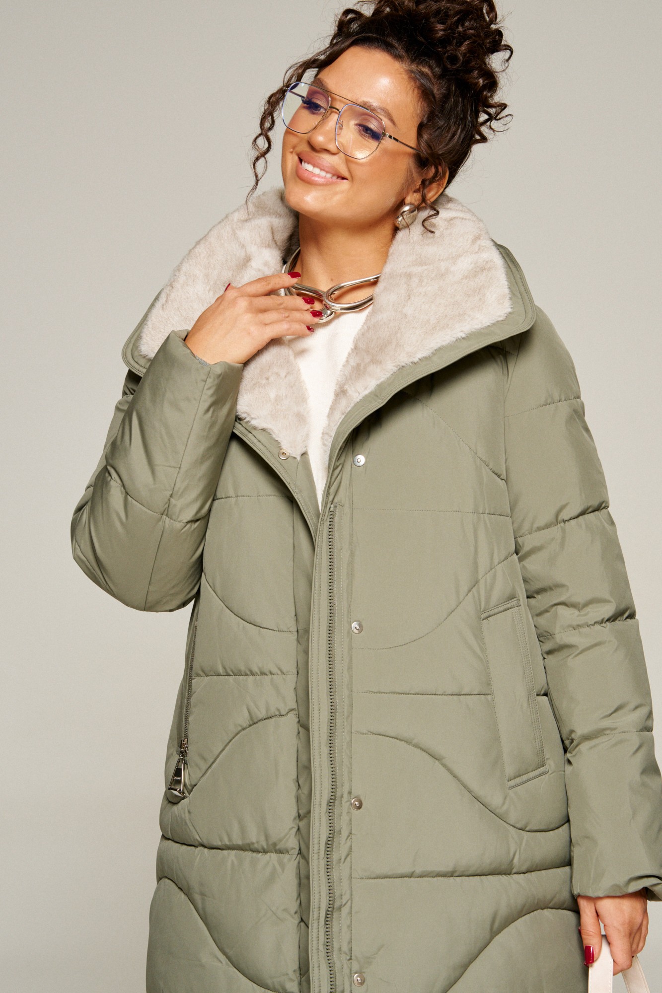 Воротник тип «апаш» с возможностью застегивания до верха. Внутренняя часть воротника обработана искусственным мехом «норка».