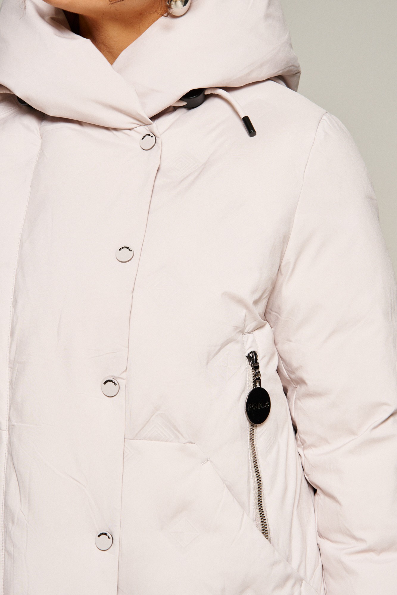 Зимнее, стеганое полупальто прямого силуэта для ценителей стиля и практичности. Это отличное сочетание современных материалов и точного кроя. Лёгкое, удобное и классическое пальто подходит для холодных дней, обеспечивая тепло и комфорт в холодную погоду. Идеально сочетает в себе сдержанность и расслабленность, универсальность и гармоничность. Пальто выполнено из прочной, влагостойкой и приятной на ощупь полиэстерной ткани; на синтетической подкладке. Утеплитель холлофайбер 250 г/м. кв. предназначен для использования изделия при температурном режиме от -10 до -25 градусов. Модель прямого силуэта, базового кроя; предназначена для повседневной носки. Перед с центральной вертикальной вставкой, переходящей в капюшон, а также с фигурным подрезом на уровне талии и с симметричными боковыми карманами от него, фиксируемые на кнопку. Выше подреза расположены функциональные вертикальные карманы на молнии с декоративным металлическим бегунком. Спинка с кокеткой и с боковыми рельефами от неё. Рукав длинный втачной двухшовный. По низу внутри рукава предусмотрена дополнительная вставка в виде притачной трикотажной манжеты. Капюшон умеренного объема. По периметру капюшона с внешней стороны вставлен шнур в цвет изделия с декоративными фиксаторами и наконечниками. Застежка смещенная на двустороннюю молнию от верха до низа и кнопки. Низ изделия ровный. Для удобства движения внизу в боковых швах предусмотрены небольшие разрезы. Подкладка гладкая с наличием внутреннего кармана слева.