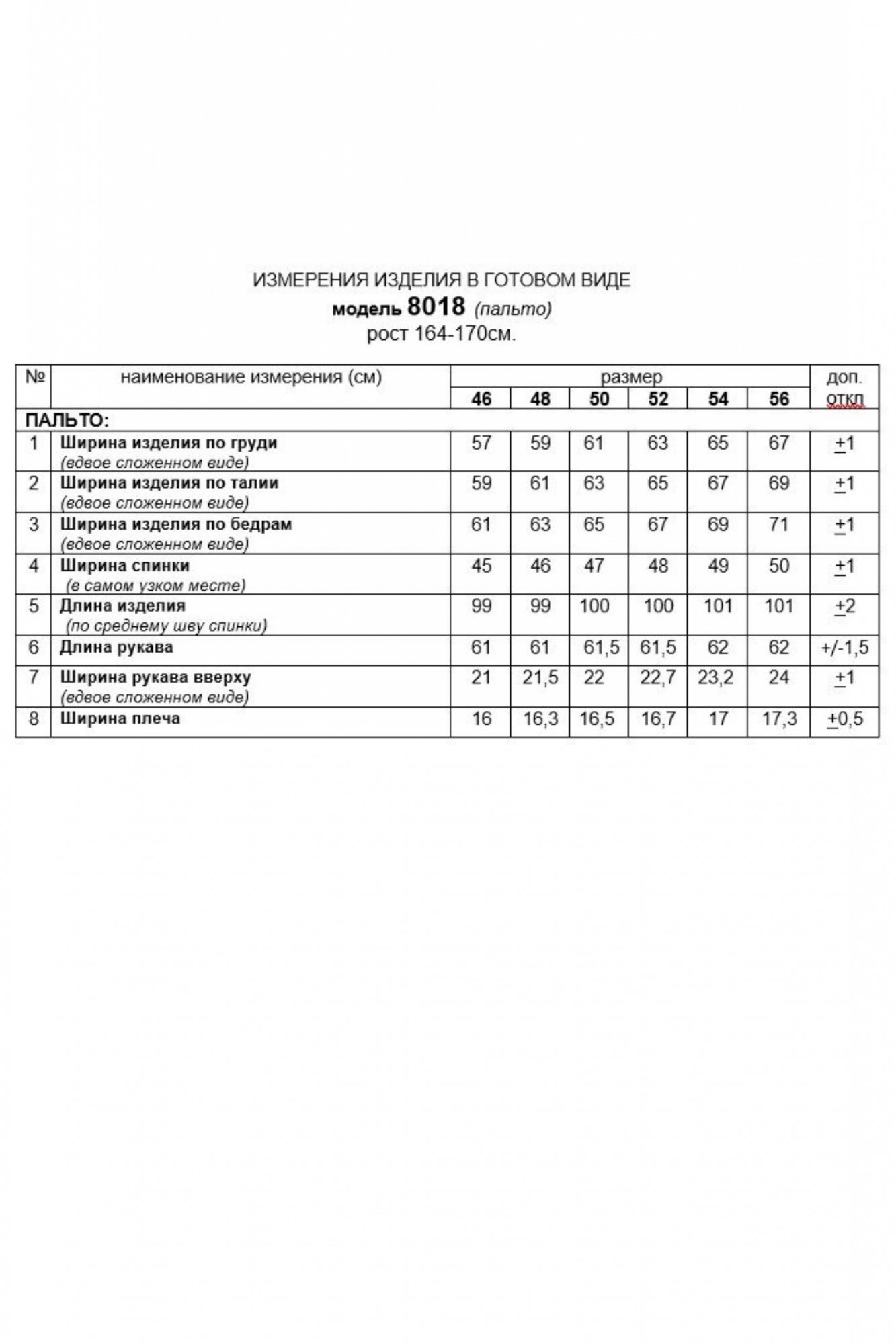 Длина (по среднему шву спинки) ~ 100 см. (+2 см.)