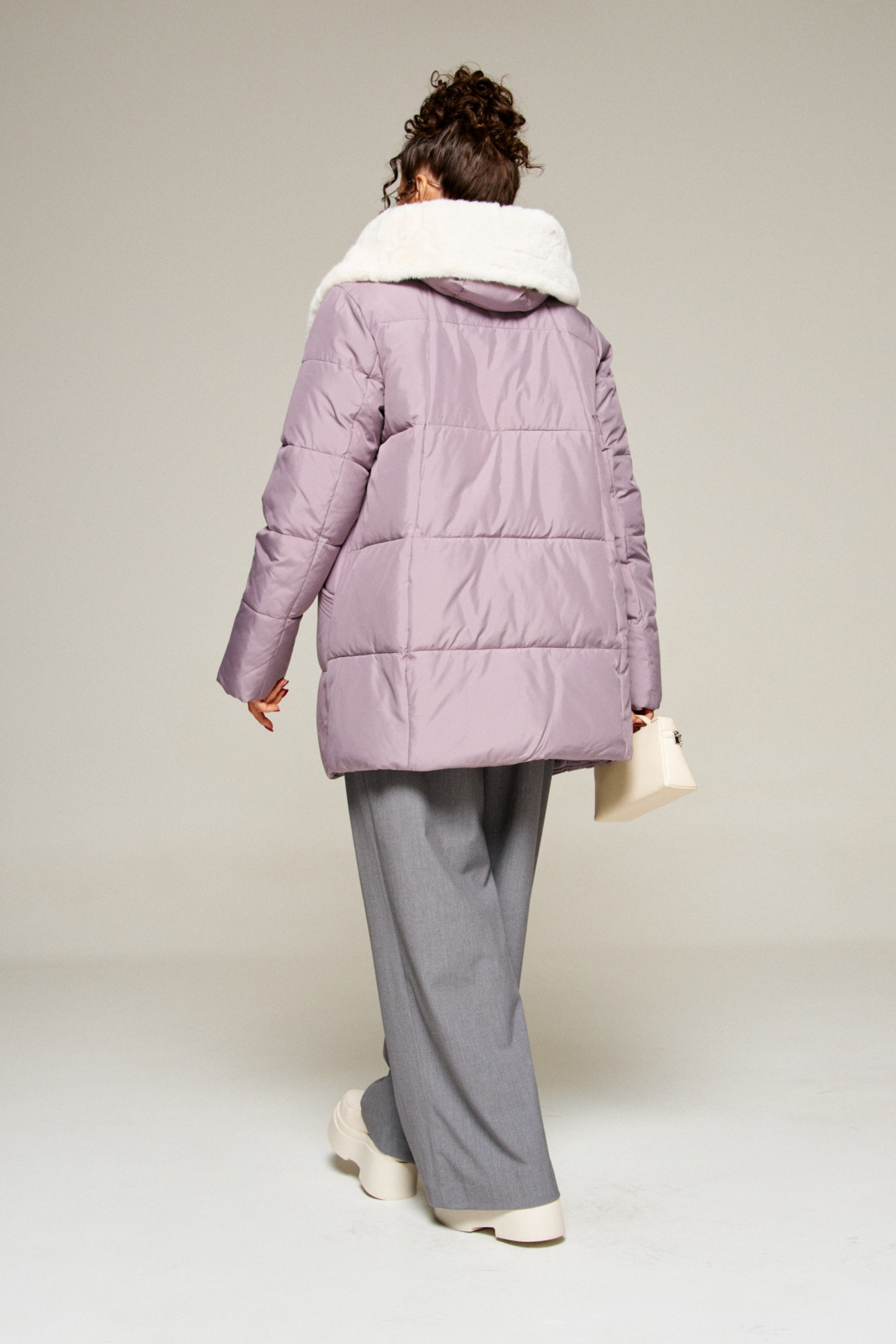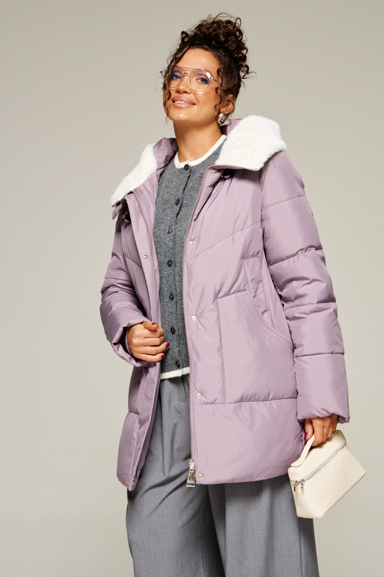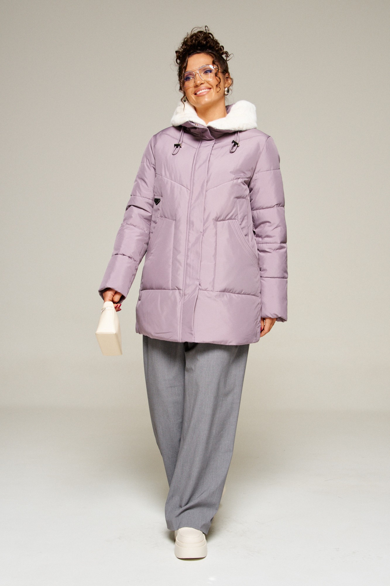 Капюшон с застежкой спереди умеренного объема. По периметру капюшона с внутренней стороны выполнена оторочка из искусственного меха, которая выполняет декоративную и защитную функции, создавая дополнительное тепло и защиту от ветра и холода.
