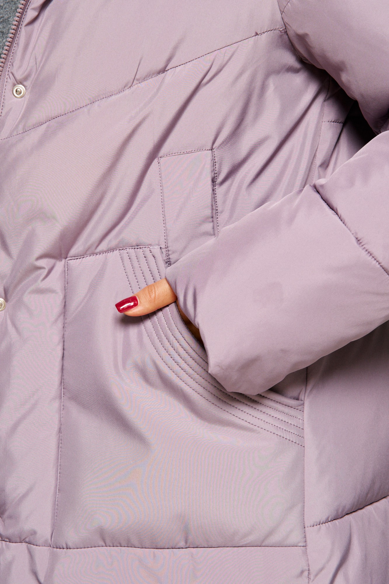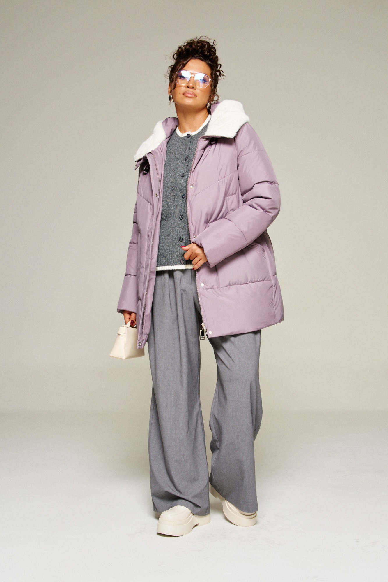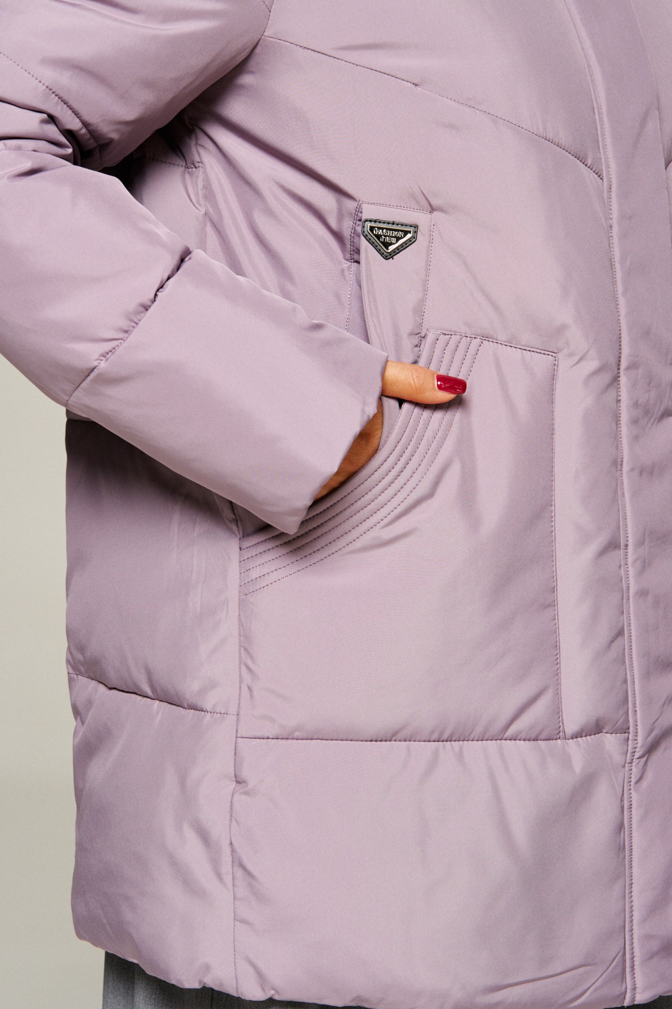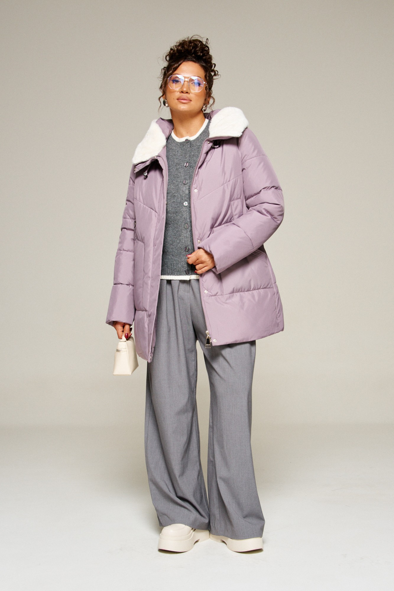 Капюшон с застежкой спереди умеренного объема. По периметру капюшона с внутренней стороны выполнена оторочка из искусственного меха, которая выполняет декоративную и защитную функции, создавая дополнительное тепло и защиту от ветра и холода.