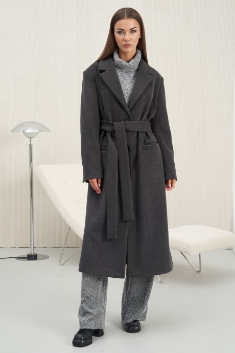 Прямой свободный силуэт, втачной покрой, классический английский воротник, центральная застёжка. Полочка с нагрудной вытачкой и прорезными карманами с листочкой. Спинка с центральным швом, высокой шлицей отделочной деталью в верхней части. Рукав двухшовный отлётной шлицей.