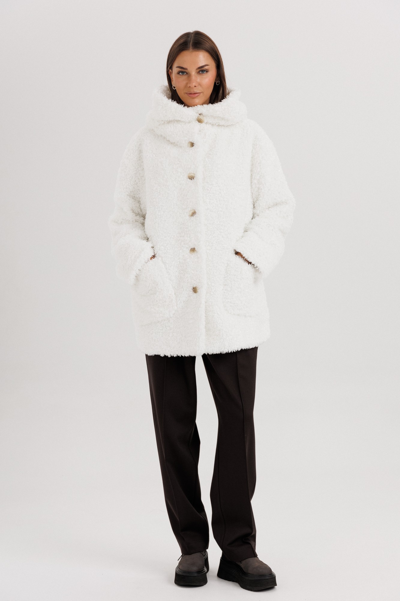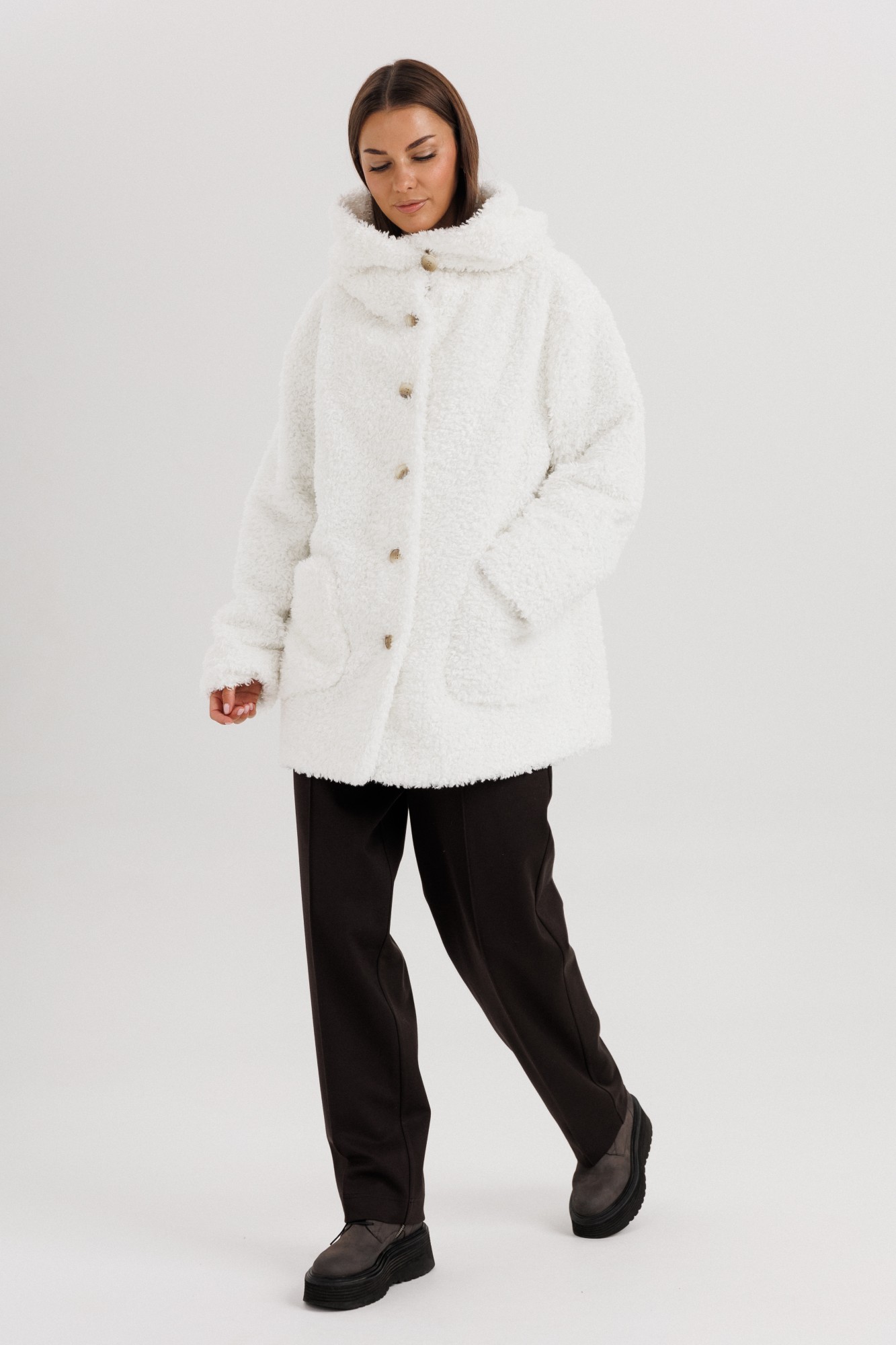 Пан 55%, ПЭ 38%, шерсть 7% Подкладка: ПЭ 100%