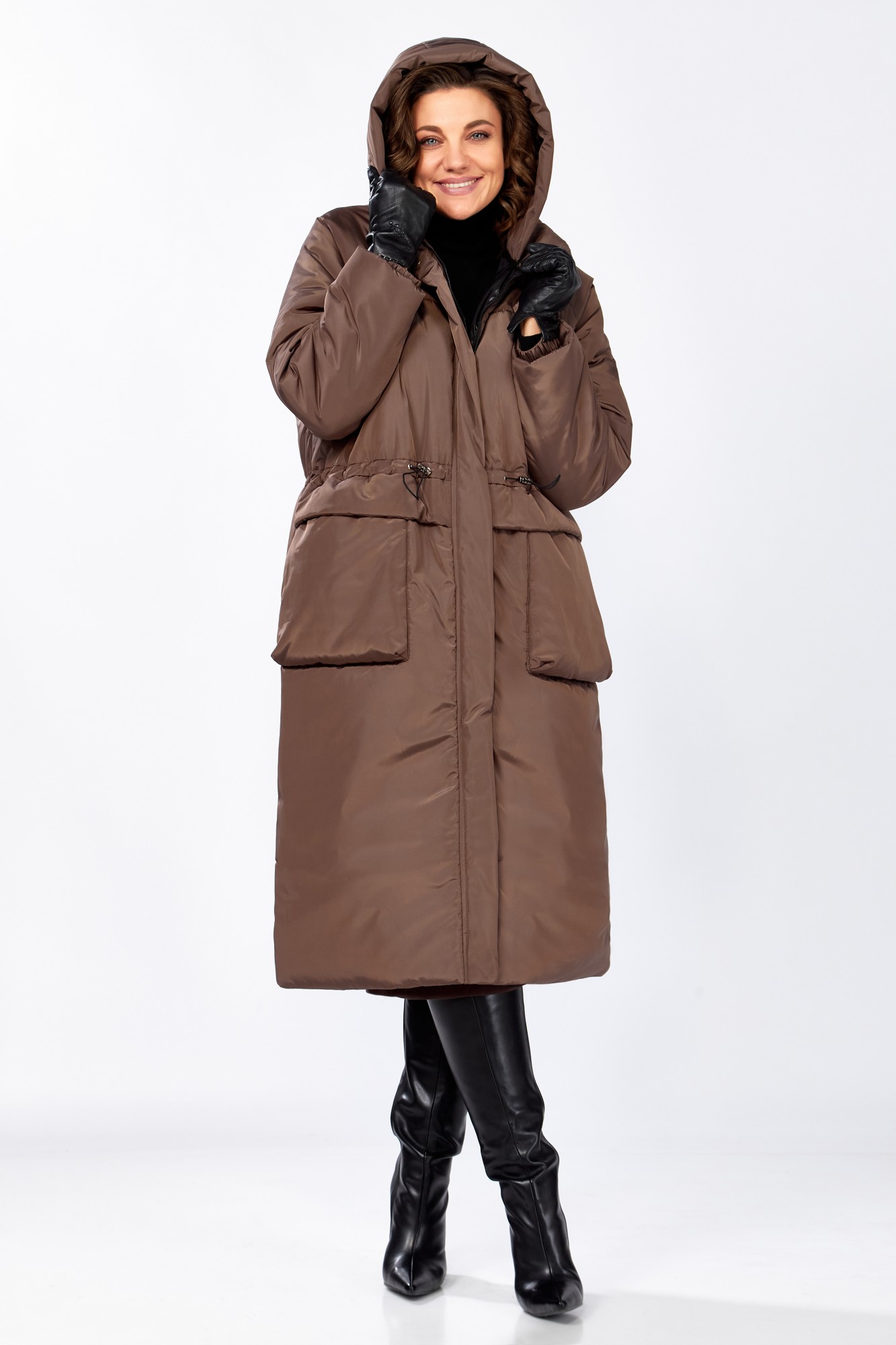 Элегантное зимнее пальто в трендовом оттенке выполнена из высококачественной курточные ткани сочетает в себе практичность и стиль ветрозащитной мембрана подкладка надёжно защищает от холодного ветра и влаги а современные утеплитель Синтепон feelGood 200 г./м.кв., обеспечивает комфорт и тепло. Прямой крой дополнен кулисой на талии что позволяет регулировать посадку и подстраивать силуэт под индивидуальные предпочтения вместительная накладные карманы делают модель удобной для повседневной носки , рукав реглан с потайной манжетой из кошкорсе и объемный капюшон дарит дополнительную защиту прохладную ветреную погоду строгий лаконичный дизайн подойдёт как для городских прогулок так и для более деловых образов, пальто удачно сочетает лёгкость комфорт и изысканность, оставаясь универсальной базовой вещью в гардеробе. Температурный режим от -5 до -15 °C.