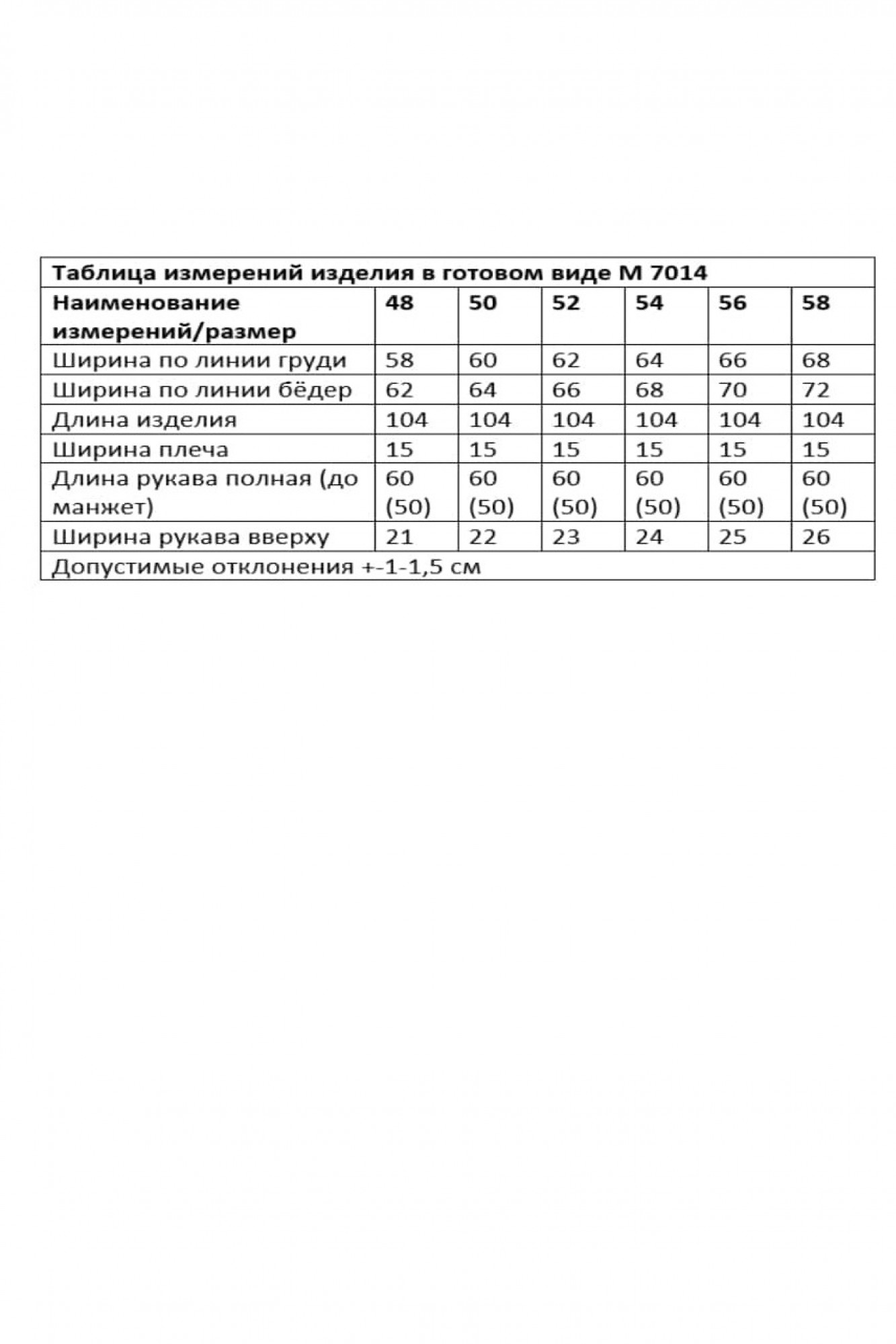 Таблица размеров