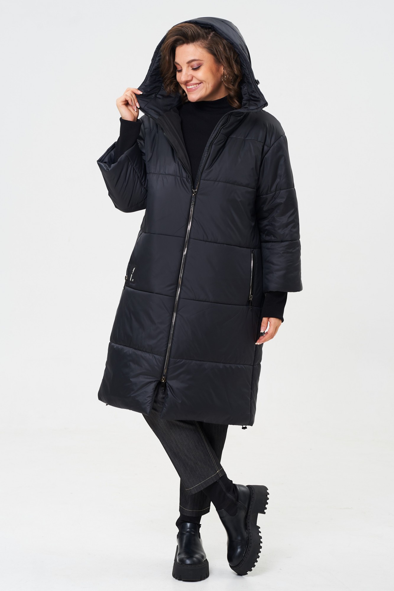 Красивое, тёплое, при этом лёгкое пальто подойдет для любого случая! Зимнее стёганное пальто прямого силуэта с одношовными втачными рукавами, заканчивающимися манжетами из плотного трикотажного полотна, с капюшоном удобной формы, с застёжкой спереди на молнию с потайной планкой. По переду выполнены карманы на молнии, справа с декоративной нашивкой. Утеплитель HOOPON 250 гр/м2, рекомендуется для эксплуатации при температуре 0 / -15 градусов (стоит учитывать индивидуальную восприимчивость к холоду).