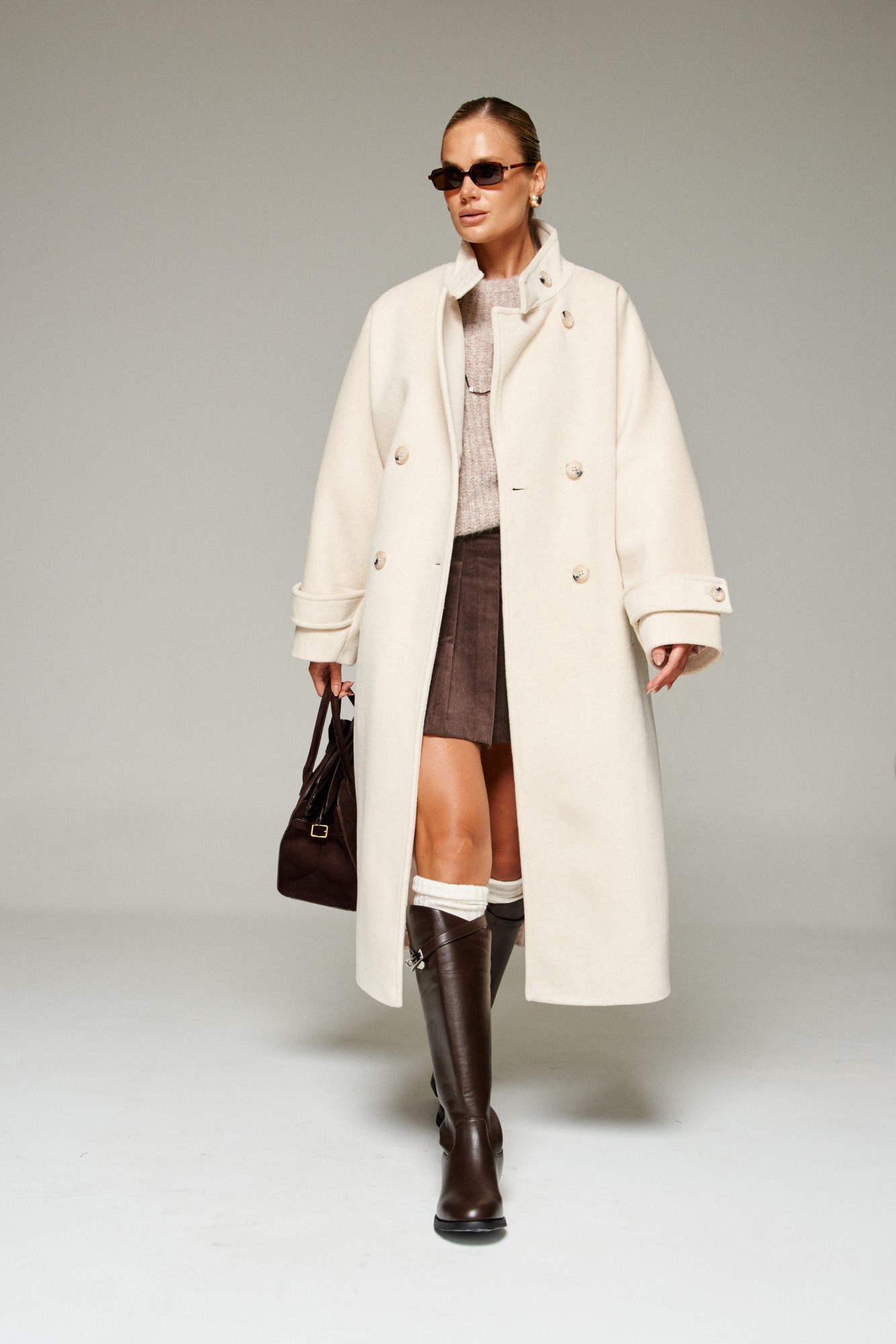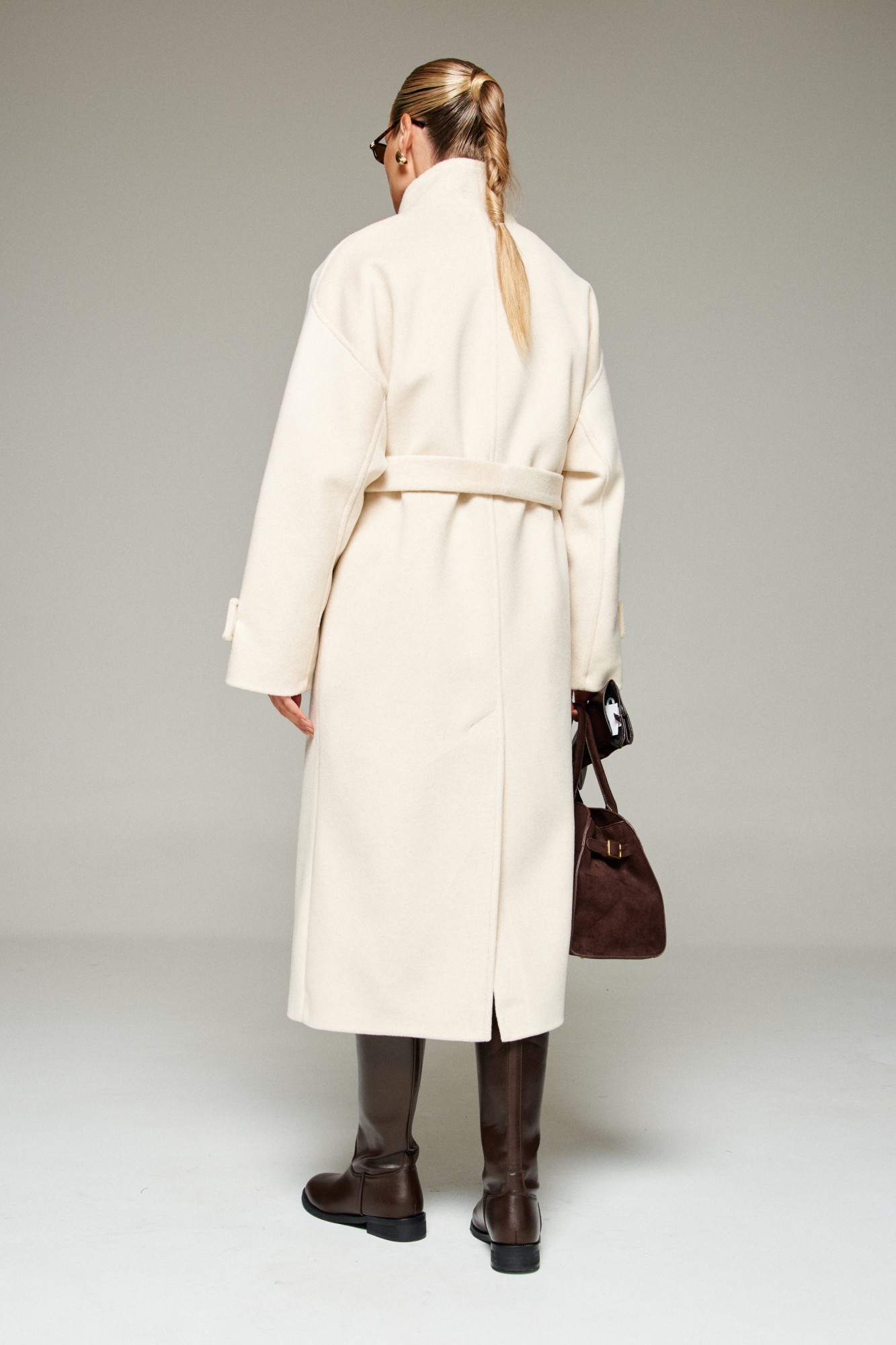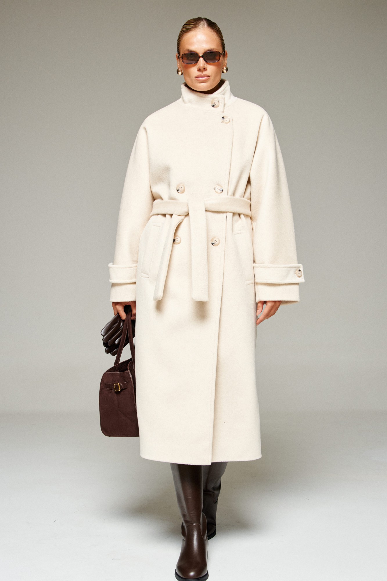 Пальто выполнено из шерстяной ткани, которая обеспечивает теплоизоляцию и защиту от ветра и влаги, подходит для межсезонья и теплой зимы. Двубортное, на подкладке. Изделие рассчитано на температурный режим от +10 до -5 градусов. Модель прямого силуэта актуального покроя «летучая мышь»; предназначена для повседневного использования.