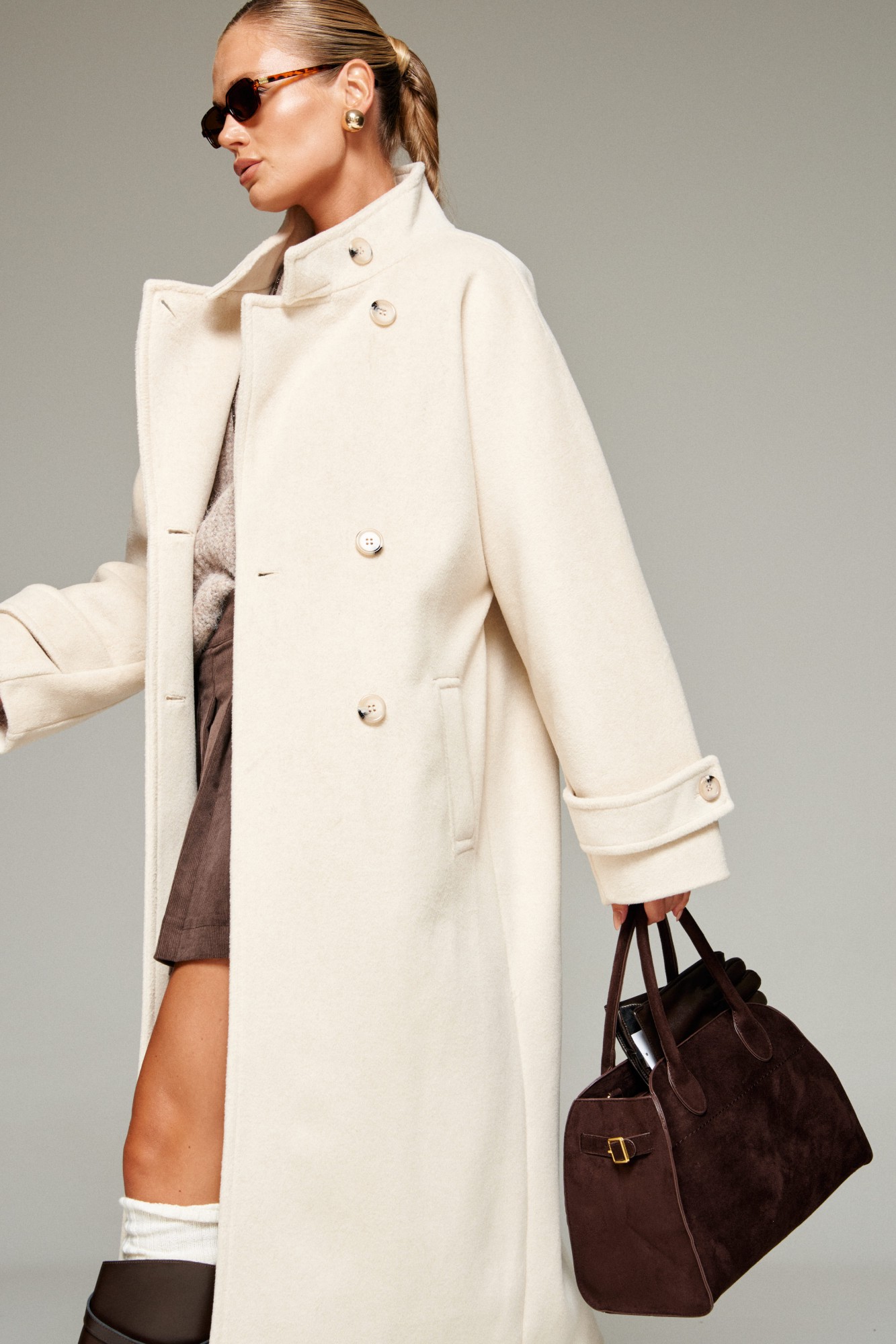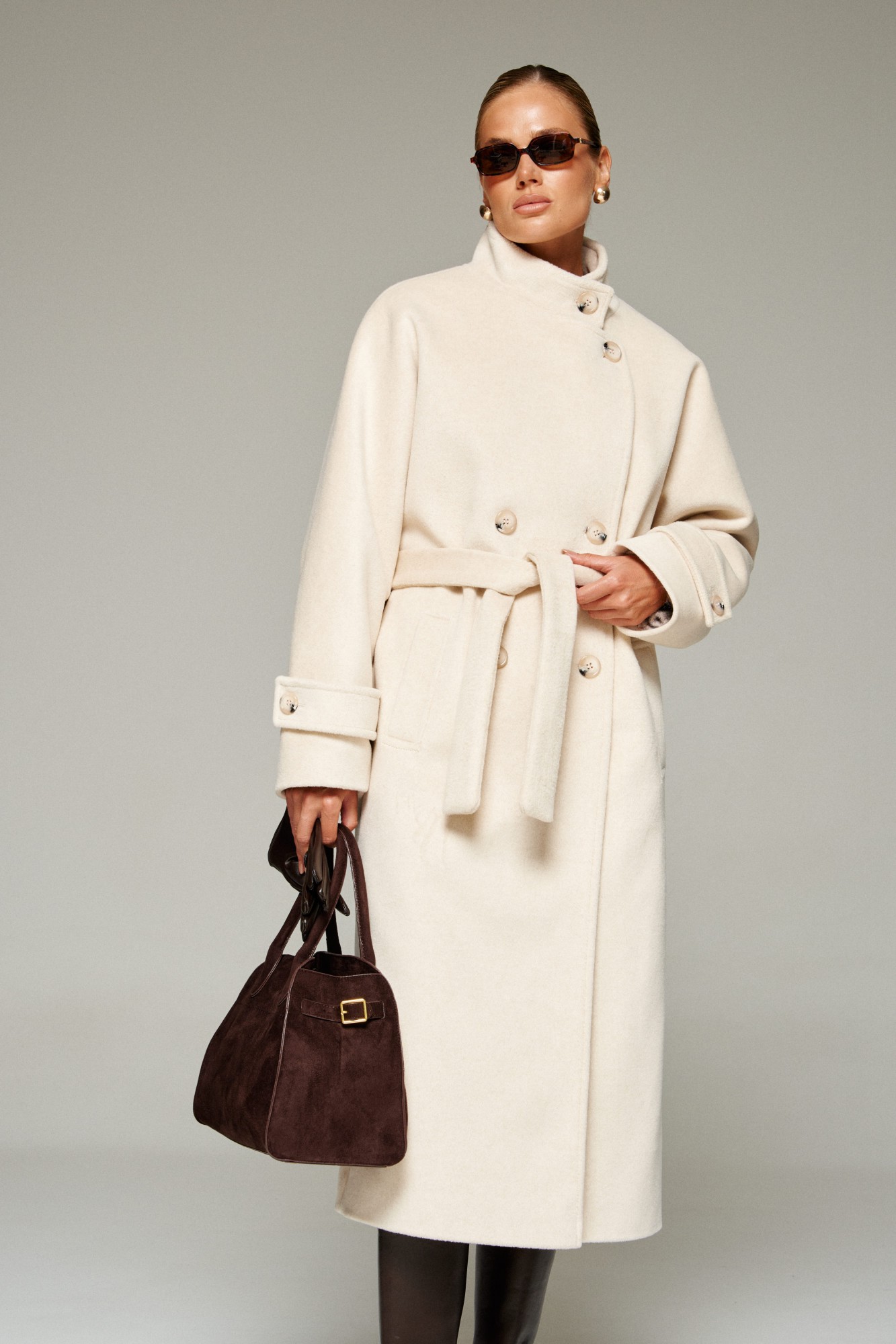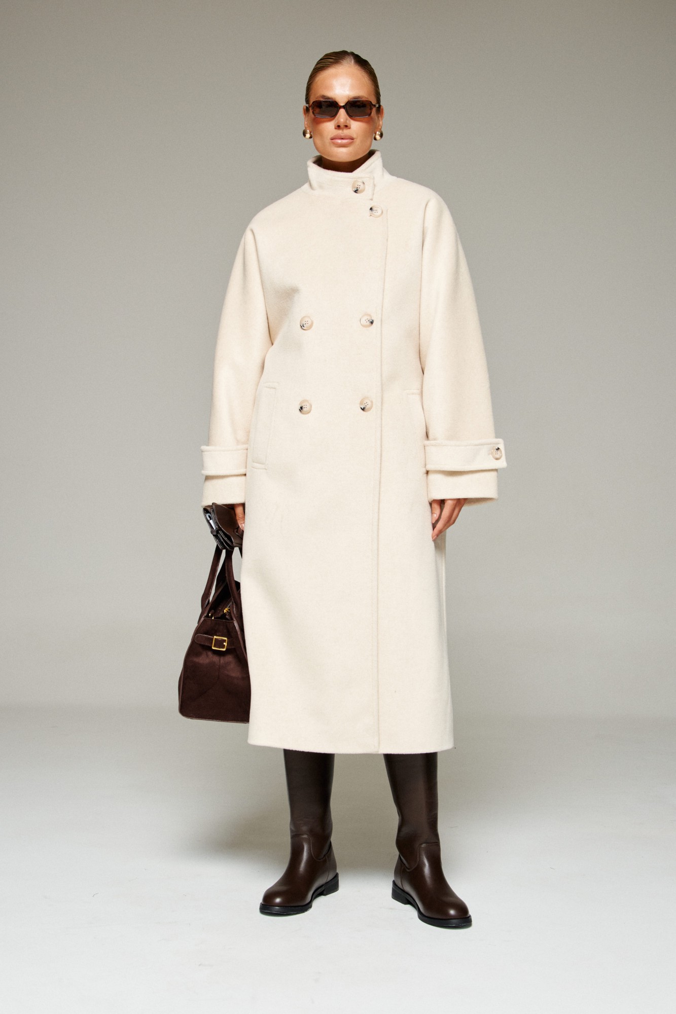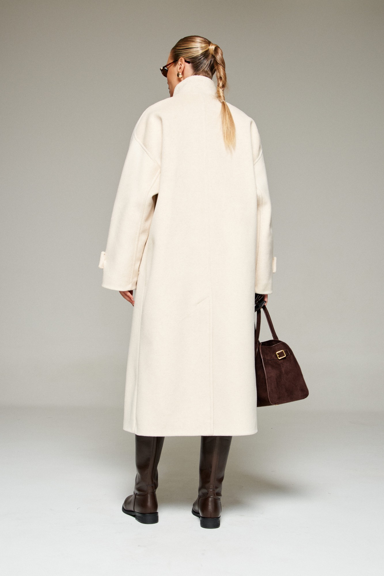 Пальто выполнено из шерстяной ткани, которая обеспечивает теплоизоляцию и защиту от ветра и влаги, подходит для межсезонья и теплой зимы. Двубортное, на подкладке. Изделие рассчитано на температурный режим от +10 до -5 градусов. Модель прямого силуэта актуального покроя «летучая мышь»; предназначена для повседневного использования.