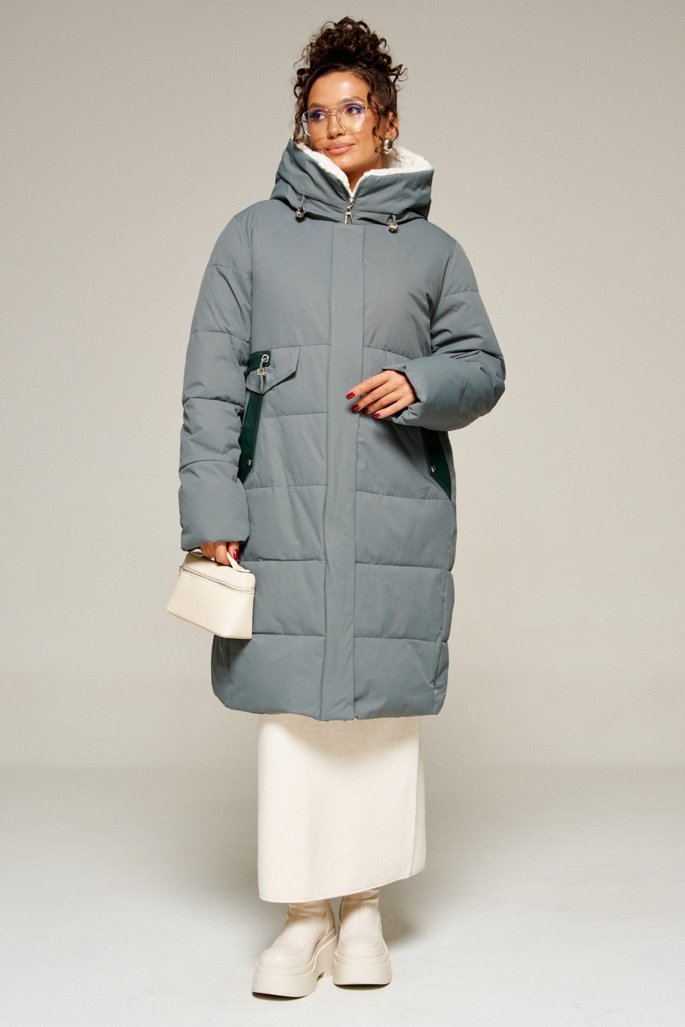 Капюшон с застежкой спереди умеренного объема. Внутренняя часть капюшона выполнена из искусственного меха, который выполняет декоративную и защитную функции, создавая дополнительное тепло и защиту от ветра и холода.