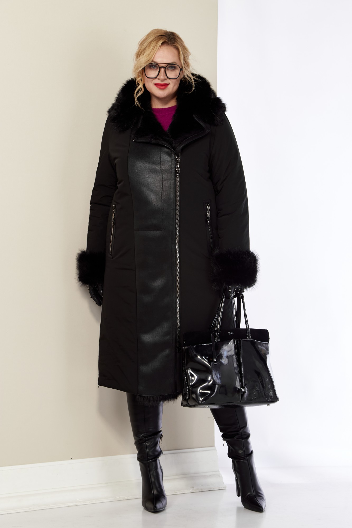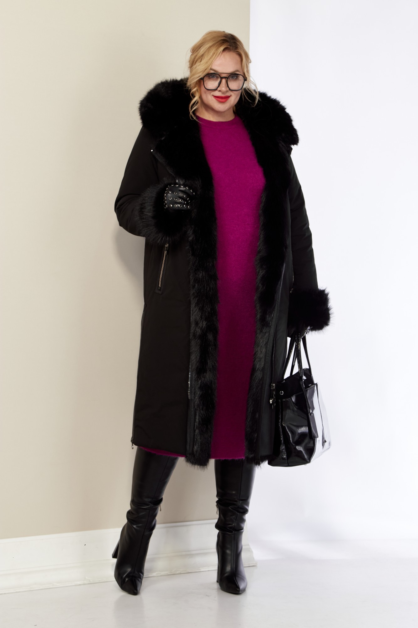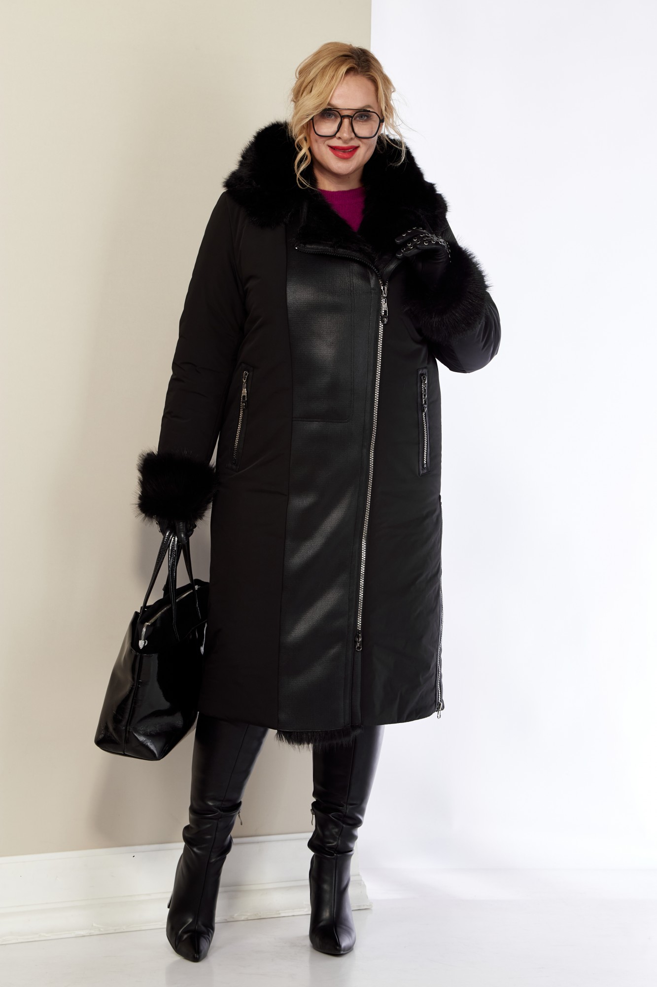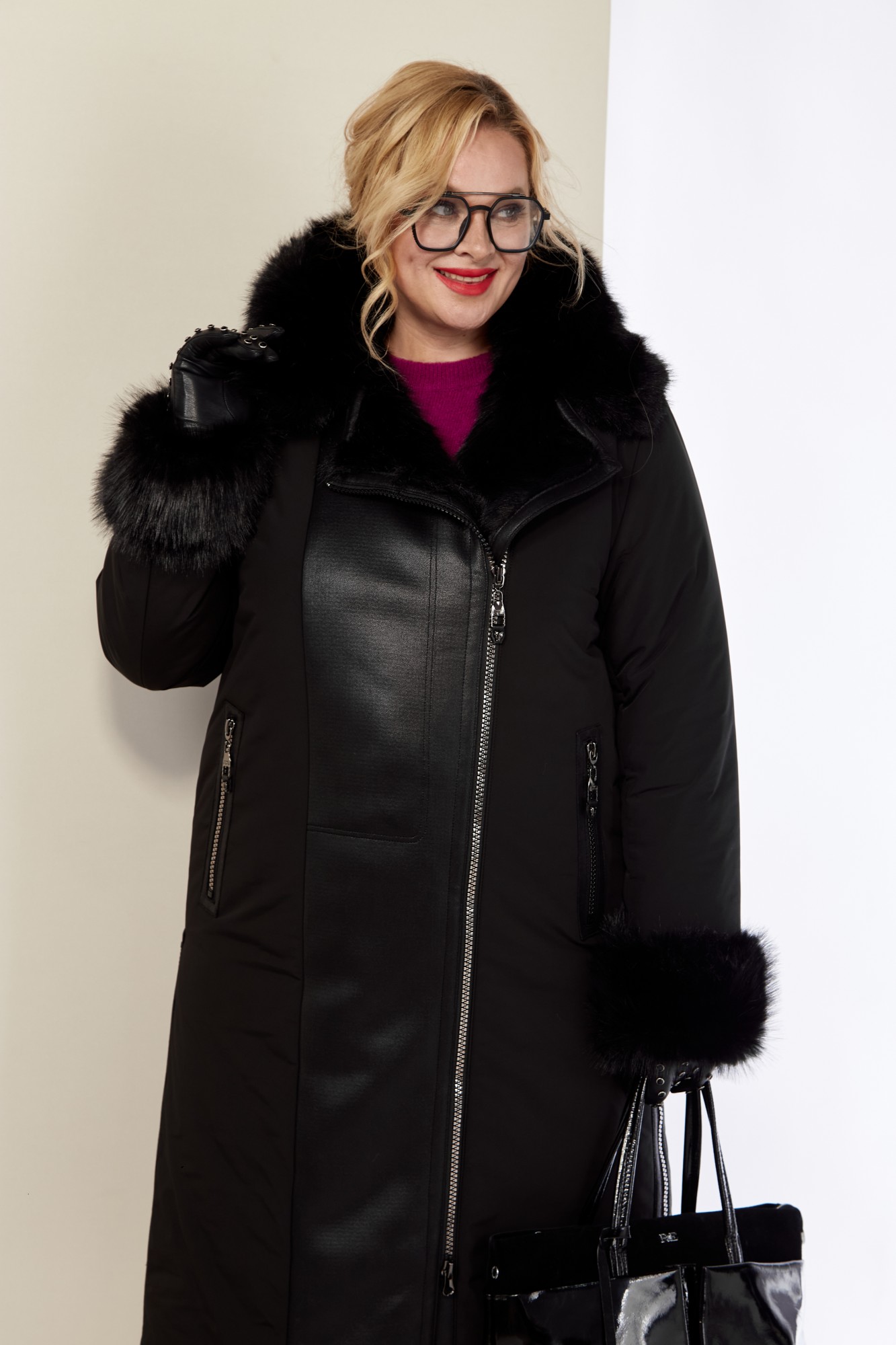 Уютное, элегантное зимнее пальто станет любимой вещью Вашего гардероба! Пальто выполнено из плотной матовой курточной ткани, при этом довольно мягкой, с водоотталкивающей пропиткой. На подкладке. Изделие комбинировано в сочетании с эко-кожей. По переду глубокие функциональные карманы прорезного типа, на молнии. Рукав втачной двух шовный. Застежка смещенная на тесьму-молнию (двухбегунковая ) по косой. Под борт, капюшон и рукава отделаны искусственным мехом, что придает изделию оригинальный вид.